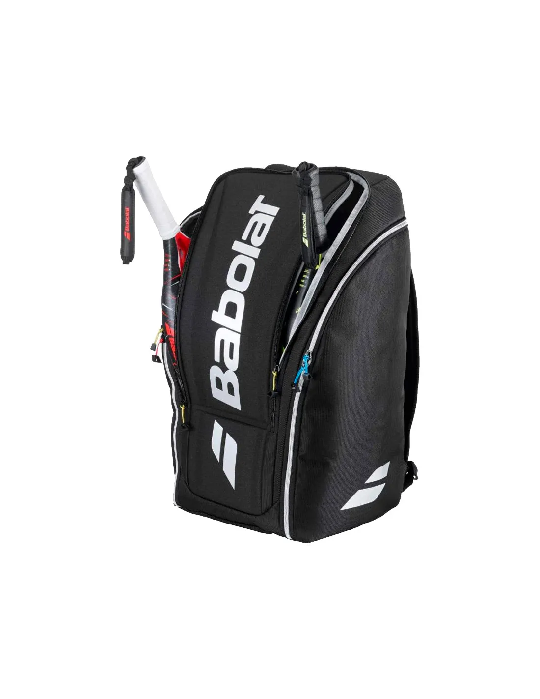 Mit einem Fassungsvermögen von 52 Litern bietet sie reichlich Platz für Kleidung, Accessoires und bis zu vier Schläger. Das speziell entwickelte Hauptfach hält die Schläger aufrecht, optimiert so den Platz und ermöglicht einen schnellen Zugriff. Seitliche Netztaschen eignen sich ideal für Bälle, Flaschen oder andere wichtige Dinge, und mehrere Innentaschen sorgen für optimale Organisation.