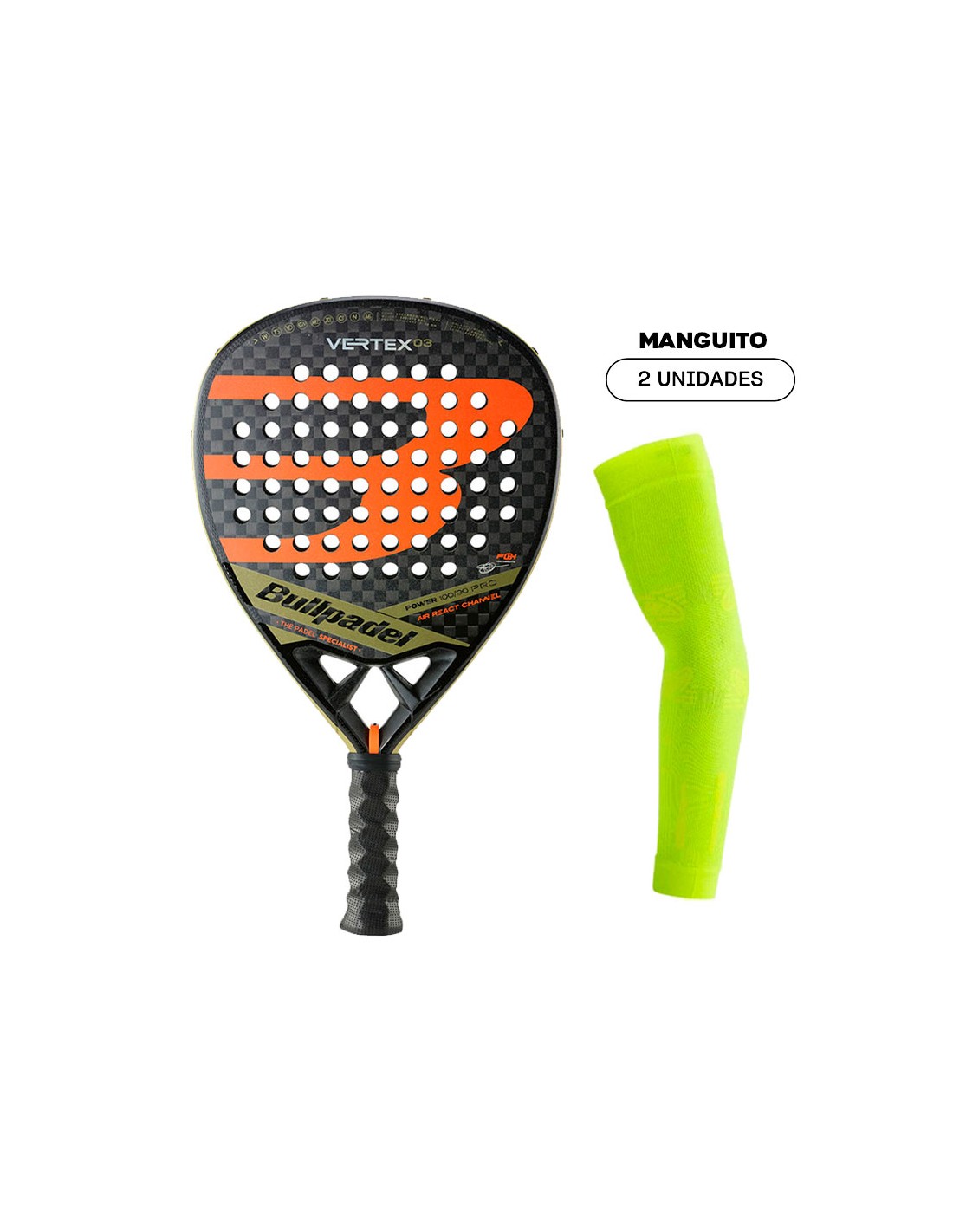 Padel-Paket Bullpadel Vertex 03 + No Strain Sleeve Fluorescent Green