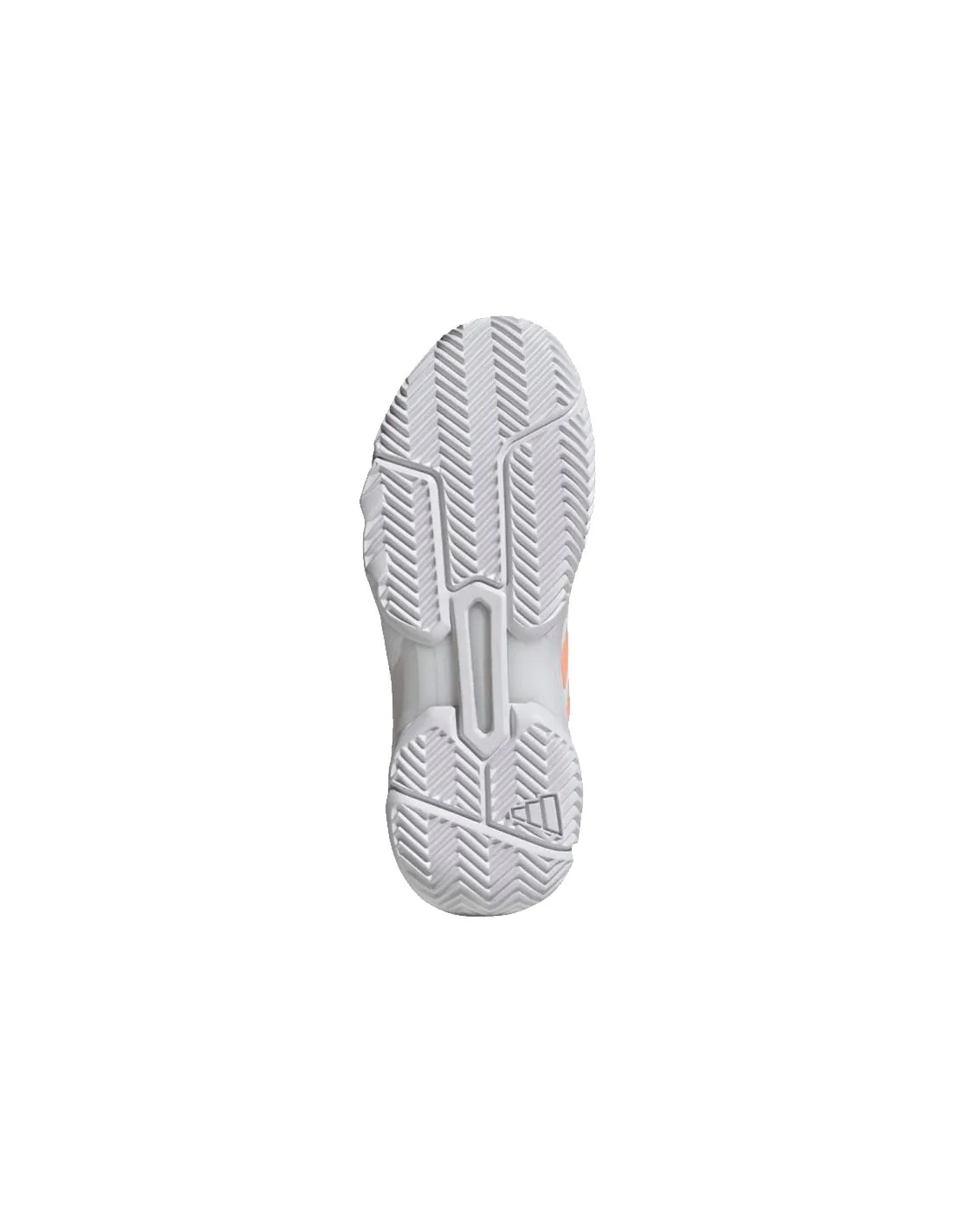 Sportschuhe für Damen, die Komfort, Bounce- Dämpfung, strapazierfähige Traktion dank Adiwear- Außensohle und Stabilität für schnelle Bewegungen auf dem Spielfeld bieten – und das alles in einem modernen weiß-orangenen Design.
