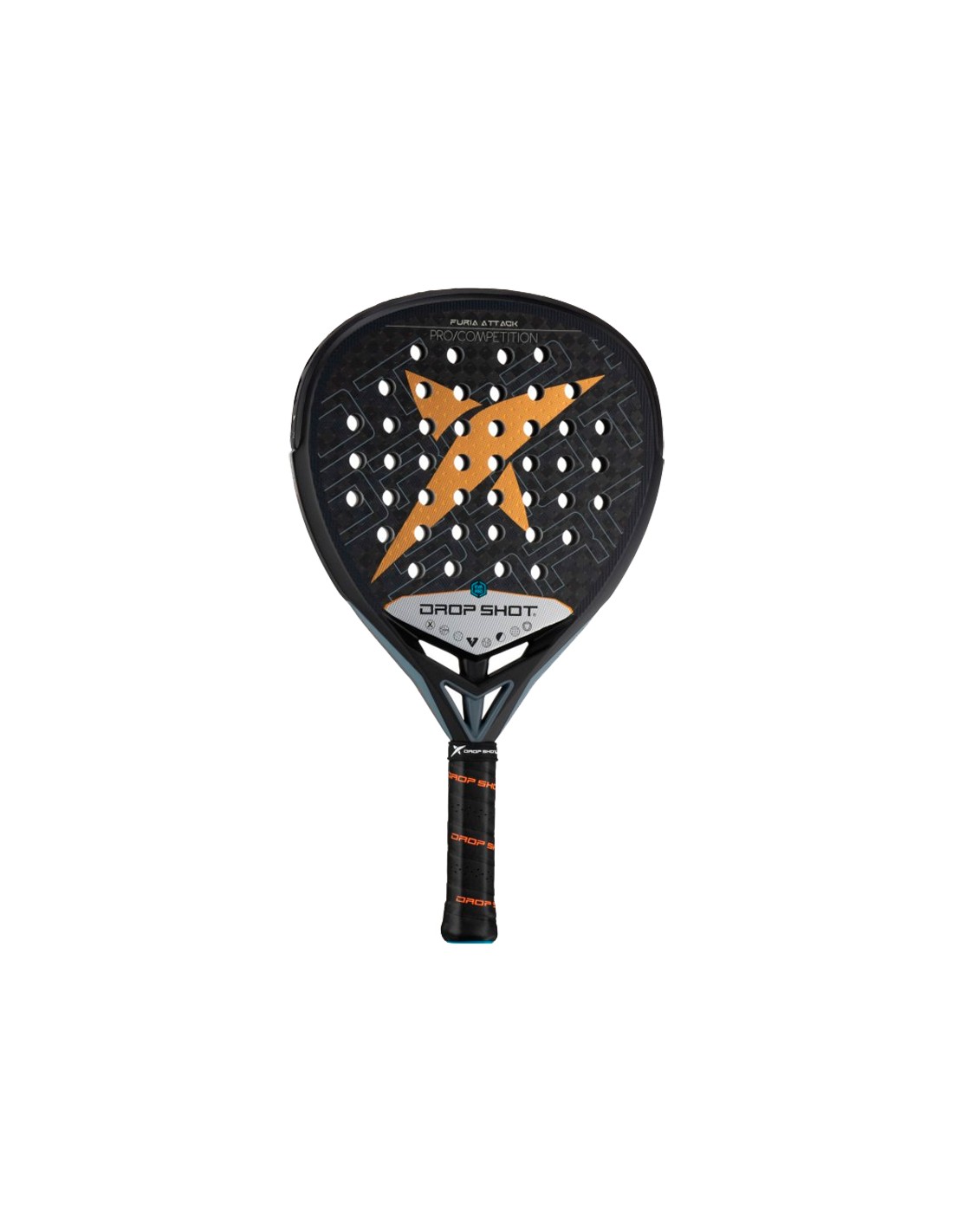 In puncto Design weist der Padelschläger Drop Shot Furia Attack einen unverwechselbaren und zeitlosen Stil auf, bei dem die orange Farbe des zentralen Logos zu einem einzigartigen visuellen Siegel wird, das die Exzellenz und Qualität dieses hochwertigen Padelschlägers widerspiegelt. Leistung.