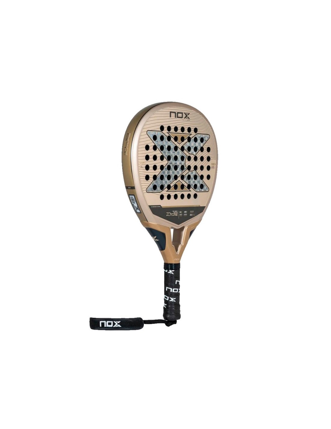 Wir präsentieren den neuen Nox TL10 FUTURE 2024 Padelschläger, den offiziellen Padelschläger von Tino Libaak , der speziell für einen der vielversprechendsten jungen Drive-Spieler auf der Rennstrecke entwickelt wurde. Der Nox TL10 FUTURE Padelschläger zeichnet sich durch seine Tropfenform aus, die eine außergewöhnliche Anpassungsfähigkeit an verschiedene Spielsituationen bietet. Dank seines HR3- Gummikerns bietet dieser Schläger eine beeindruckende Ballausbeute vom Boden des Spielfelds und ermöglicht so eine hervorragende Kontrolle und bemerkenswerte Kraft bei jedem Schlag. Am Netz sind seine Geschwindigkeit und Manövrierfähigkeit unübertroffen und Tinos Rückhandvolleys werden durch 12K aluminisierte Kohlefaser verbessert. Diese Materialkombination sorgt für ein perfektes Gleichgewicht zwischen Steifigkeit und Spielgefühl und ermöglicht ein aggressives und präzises Spiel.