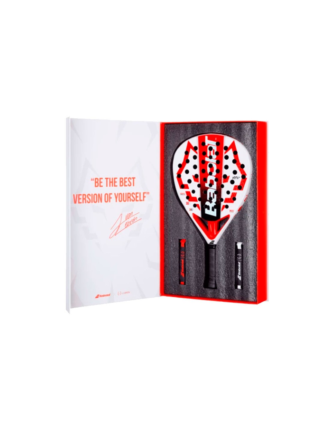 Der Babolat Viper Juan Lebron 2025 Padelschläger ist die perfekte Wahl für Spieler, die den Platz mit Kraft, Präzision und Stil dominieren möchten. Diese exklusive Edition markiert die Rückkehr zum ursprünglichen Design des legendären Viper-Modells, jedoch mit Innovationen, die es zu einem unverzichtbaren Werkzeug für Padel-Liebhaber machen. Dieser vom Champion Juan Lebron inspirierte Schläger stellt eine Balance zwischen Leistung und spektakulärem Design dar und zeichnet sich durch seine Farbkombination aus Weiß, Rot und Schwarz aus, die für eine moderne und anspruchsvolle Ästhetik sorgt.