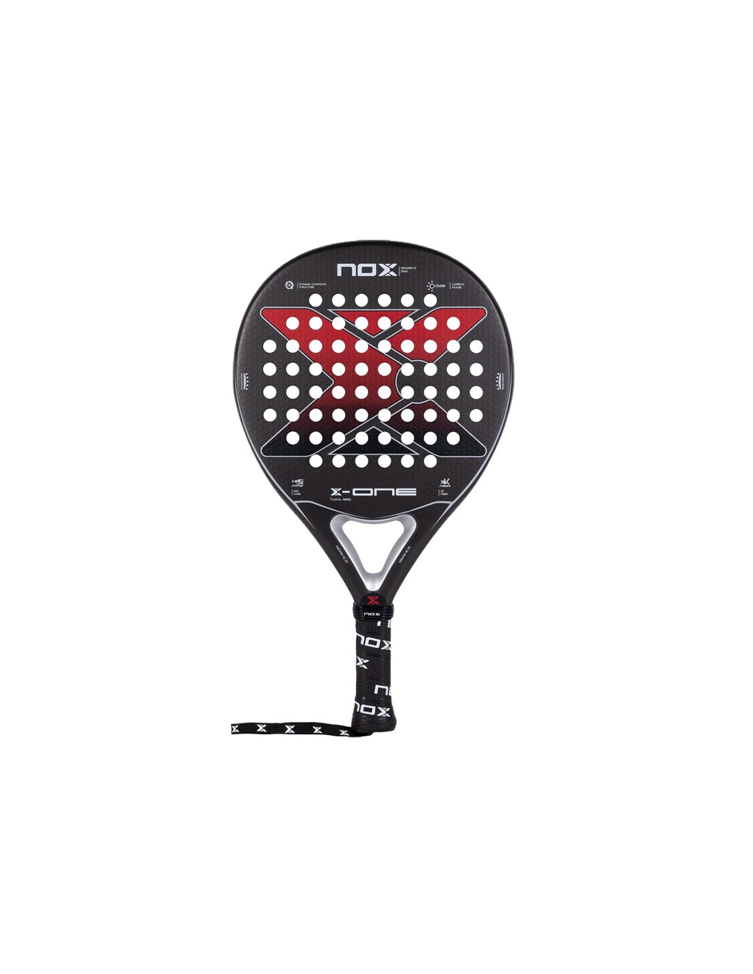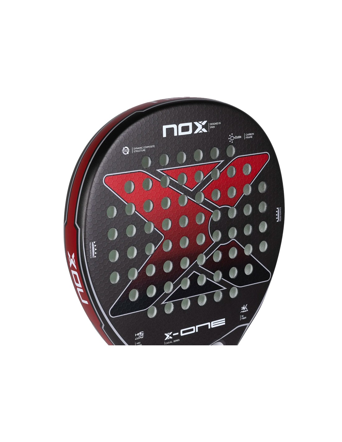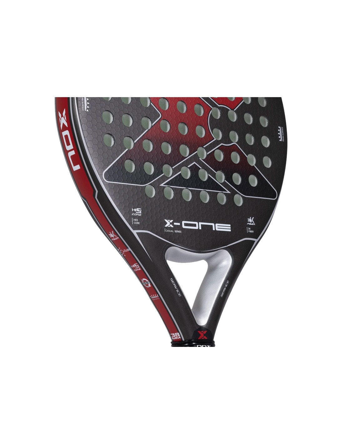 Was sein Design angeht, präsentiert der Padelschläger Nox X-One Evo Red eine moderne und attraktive Ästhetik in Rot- und Schwarztönen mit weißen und silbernen Details. In der Mitte der Klinge befindet sich das Nox-Logo in Chromoptik, das ihm einen Hauch von Eleganz verleiht.