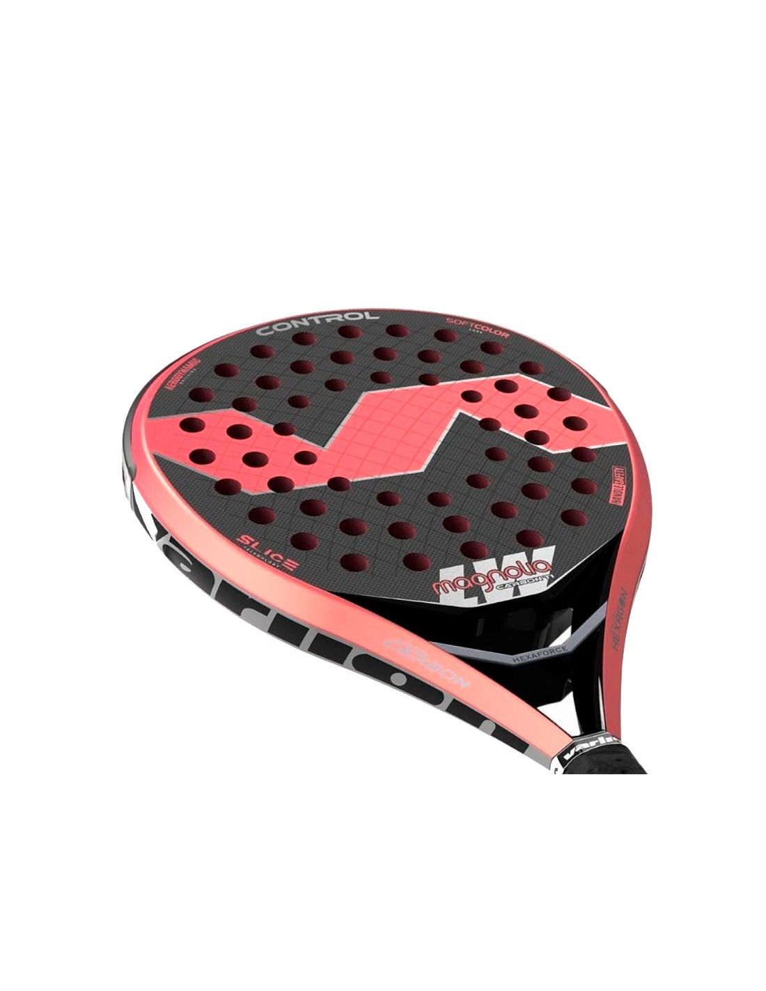 Eine seiner Stärken ist das innovative Aerodynamic Drilling , ein Perforationssystem, das die Aerodynamik des Schlägers verbessert, unerwünschte Vibrationen reduziert und den Sweetspot vergrößert. Dies sorgt für eine gleichmäßige Reaktion über die gesamte Schlagfläche. Ergänzt wird dies durch die Slice 3D- Technologie, eine raue Oberfläche mit gewölbtem Relief, die sowohl bei Topspin- als auch bei Slice-Schlägen für effektiveren Spin sorgt. Ideal für alle, die jedem Schlag ihre persönliche Note verleihen möchten.
