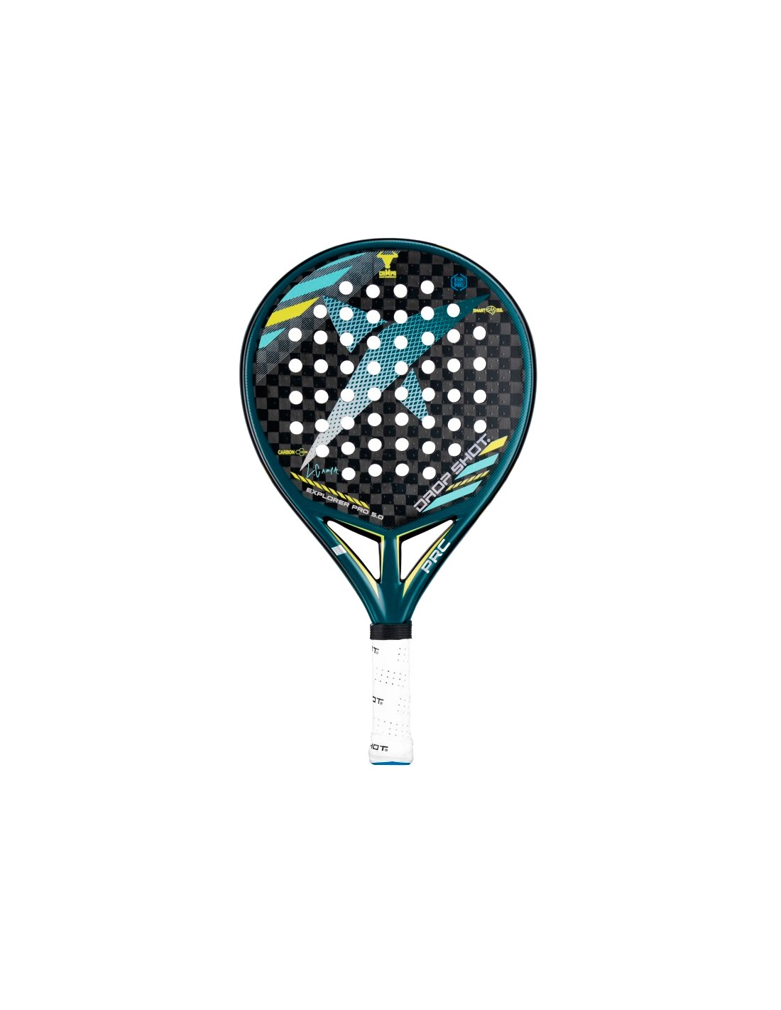 Die Drop Shot Explorer Pro 5.0 Schaufel spiegelt den Fortschritt und die Entwicklung wider, die die tägliche Arbeit von Drop Shot kennzeichnen. Die neue Kollektion zeichnet sich durch hohe Leistung, Haltbarkeit und Widerstandsfähigkeit aus, wesentliche Eigenschaften während des Spiels . Mit einem Tropfenformat, einem außergewöhnlichen Sweetspot und einer in den oberen Bereich des Schlägers verlagerten mittelhohen Balance bietet er dank des integrierten Herzstücks eine hervorragende Beweglichkeit.