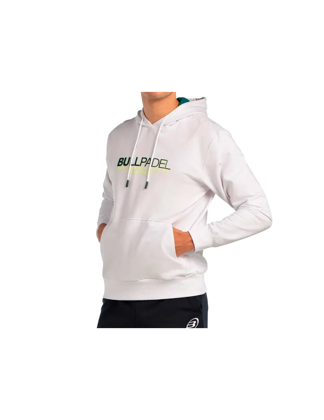 The white design conveys cleanliness, elegance, and versatility, easily matching any sporty or casual outfit. It includes an adjustable hood, a kangaroo pocket, and the Bullpadel logo on the chest, adding a distinctive touch that reflects the brand's identity.