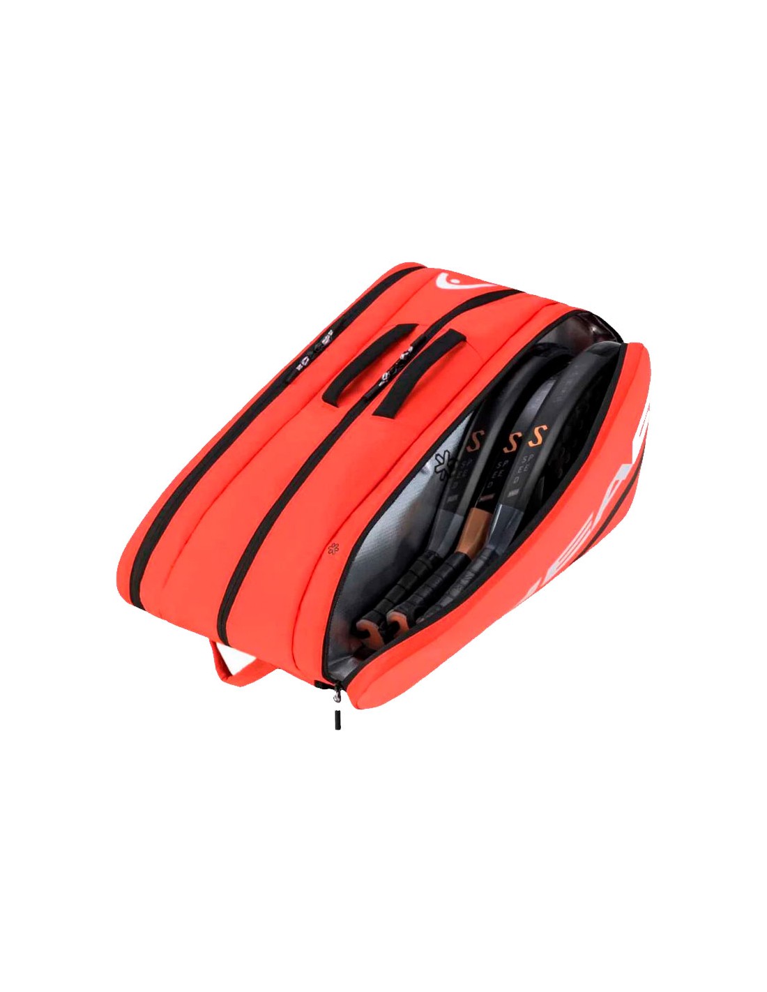 In summary, the Head TOUR PADEL BAG L padel racket bag in fluorescent orange is a perfect fusion of innovative design, optimized space and advanced technology, offering a complete and sustainable solution for padel players looking to stand out in both performance and style.