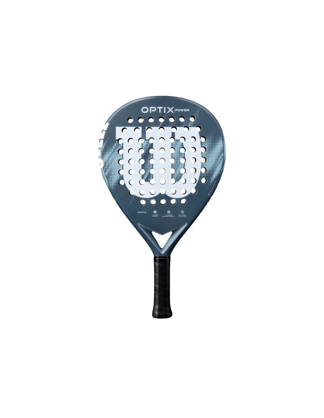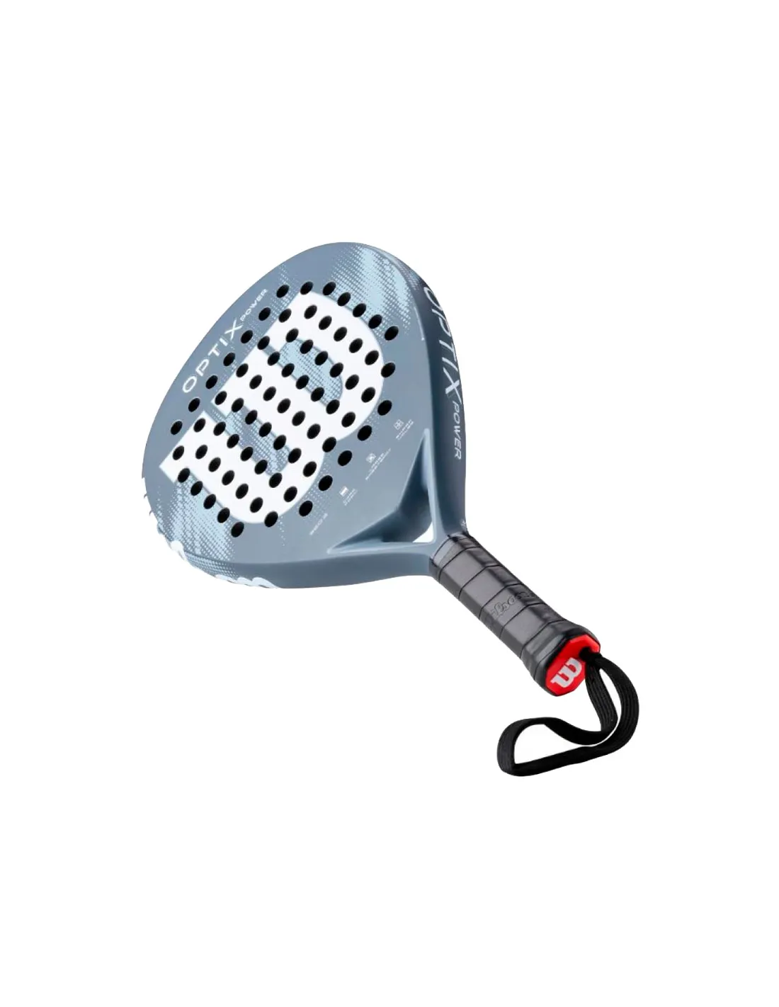 The Wilson Optix V2 Power is a padel racket designed for beginner and intermediate players looking for easy power and balanced control. Its teardrop shape and high balance point promote more powerful shots, while its fiberglass and foam core offer comfort, maneuverability, and excellent ball output from the first use.