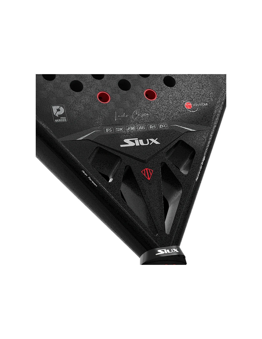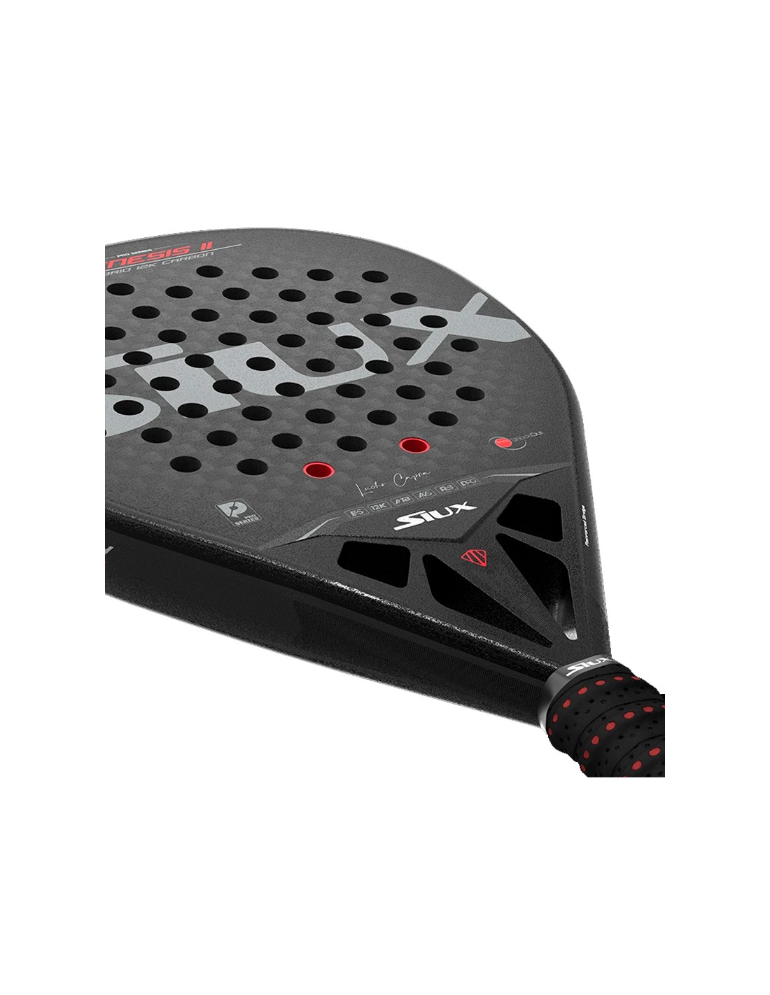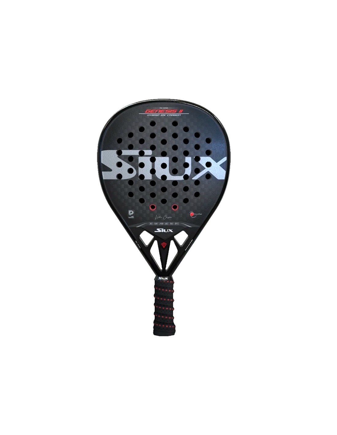 Siux Genesis II Lucho Capra Pro: High performance paddle tennis racket for advanced and professional players. Control, power and durability in a sleek design. Stand out on the track with the confidence of Lucho Capra!