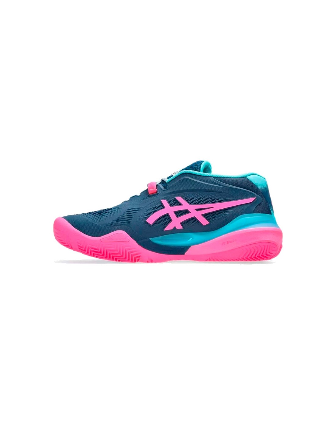 Dominate the court with the Asics Gel Resolution X Padel Blue Mako Pink, sneakers with GEL cushioning, herringbone sole and vibrant design for maximum performance.