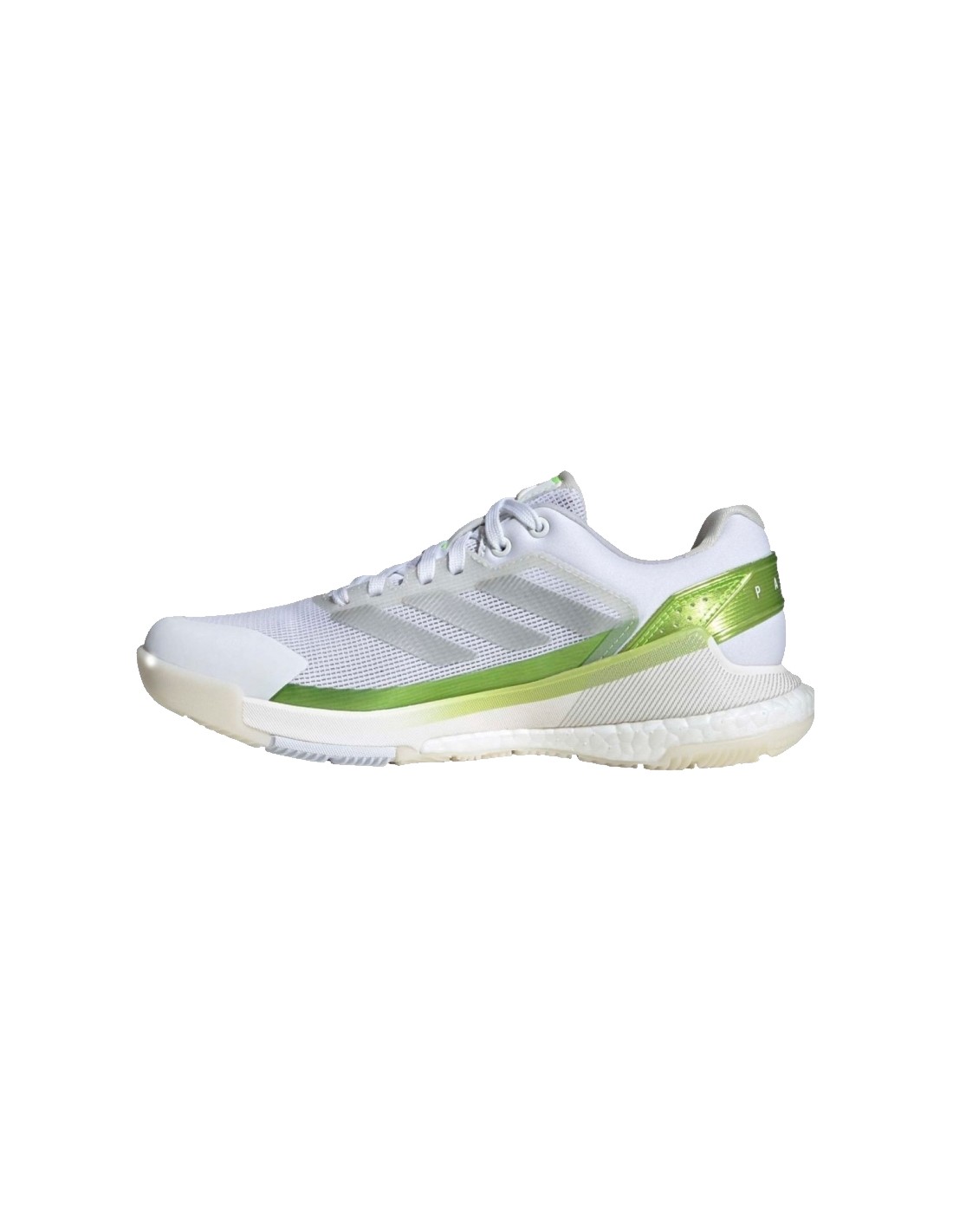 The Adidas Crazyquick Padel White Lucid Lemon Women 's Shoes are designed for players looking for speed, energy, and stability on the court. Their lightweight and flexible textile and synthetic upper adapts to the natural movement of the foot, while the Slingframe structure provides superior stability for quick movements.