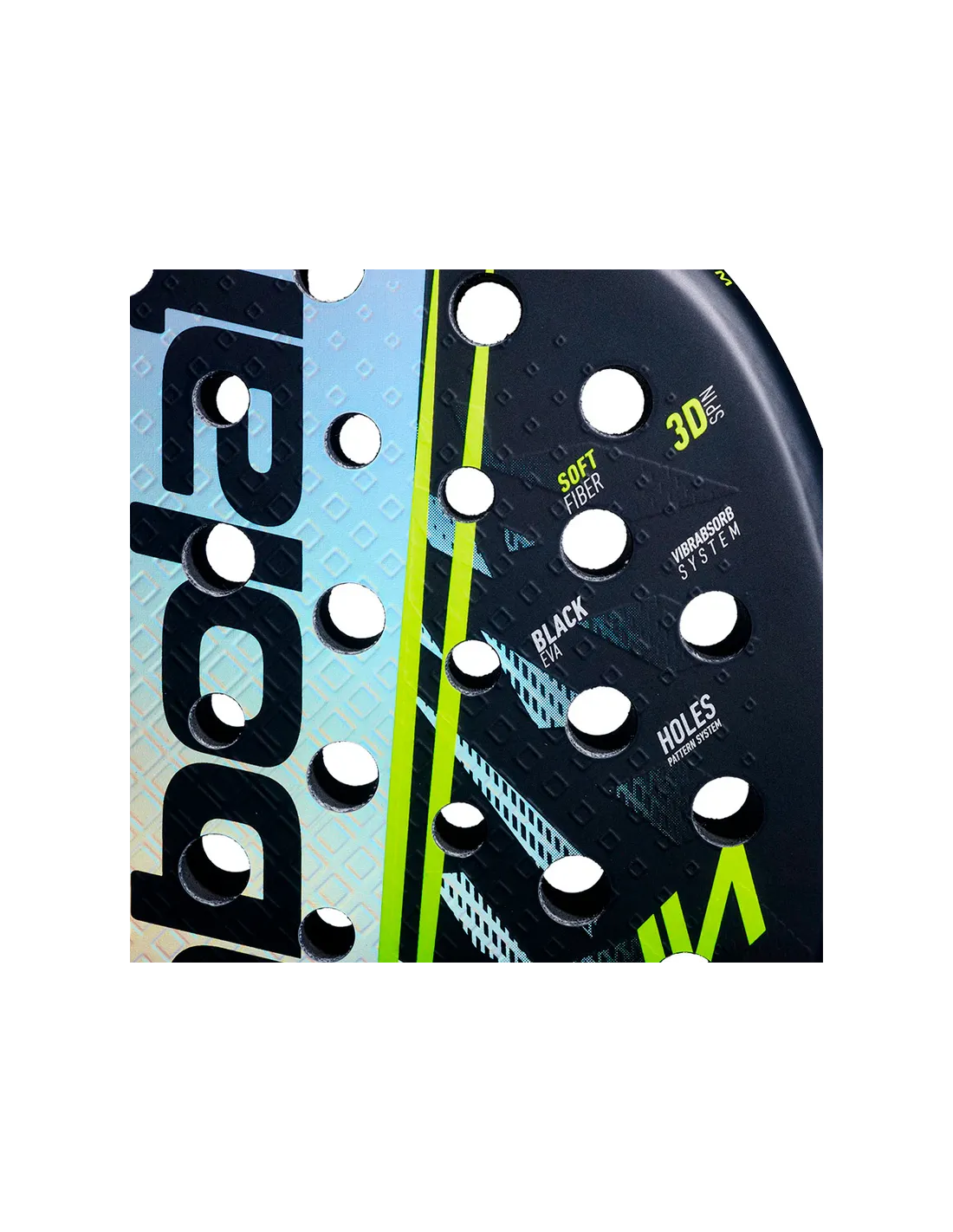 La pala integra tecnologías avanzadas como el Vibrabsorb System, que reduce las vibraciones y protege el brazo del jugador, el Holes Pattern System para optimizar el punto dulce y mejorar la transmisión de potencia, y una estructura reforzada que aumenta la estabilidad en el impacto. Estas innovaciones garantizan un rendimiento constante, manteniendo la precisión y el confort durante partidos largos e intensos.