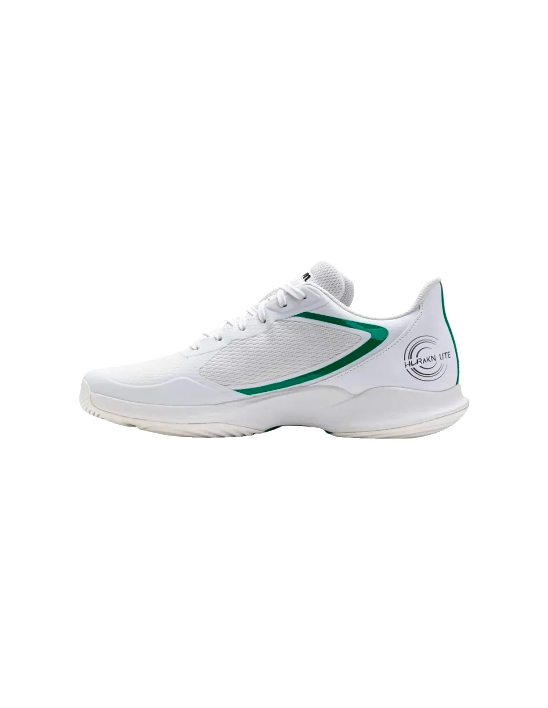 En la parte inferior, el Pro Torque Chassis Light aporta estabilidad, flexibilidad y velocidad, especialmente en los cambios de dirección rápidos. La suela Duralast, fabricada con caucho de alta densidad, garantiza una durabilidad superior y un agarre óptimo. Su diseño Optimum Grip, con patrones en vórtice, mejora la rotación y los giros característicos del pádel. Todo ello se completa con un diseño blanco limpio y moderno que combina rendimiento, estilo y sostenibilidad.