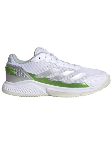 Passez au niveau supérieur avec l' Adidas Courtquick , une chaussure conçue spécialement pour les femmes recherchant un équilibre parfait entre vitesse, confort et stabilité sur le court de padel. Son design blanc moderne, rehaussé de détails argentés et de touches de vert éclatant, crée un look à la fois sportif et élégant qui ne passe pas inaperçu, sur le court comme en dehors.
