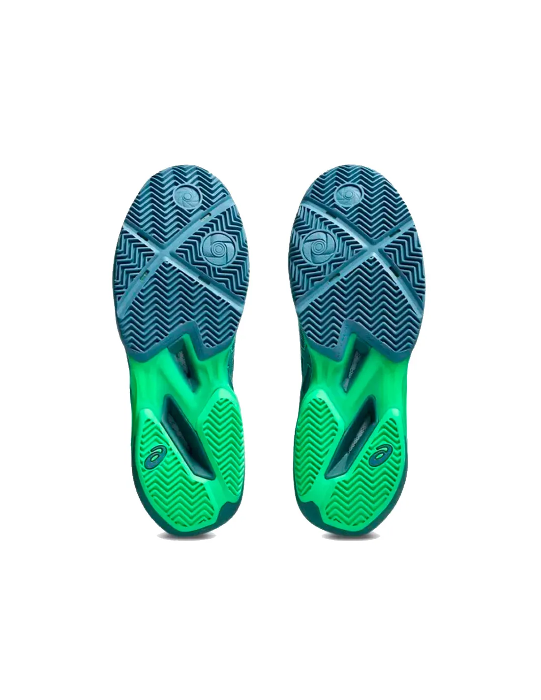 La chaussure Asics Sonicsmash FF Bleu Vert est conçue pour les joueurs recherchant vitesse, agilité et maintien optimal dans les sports de raquette comme le padel. Avec son design bleu et vert dynamique, ce modèle allie technologies de pointe et esthétique moderne, idéal pour ceux qui souhaitent des chaussures alliant performance et style.
