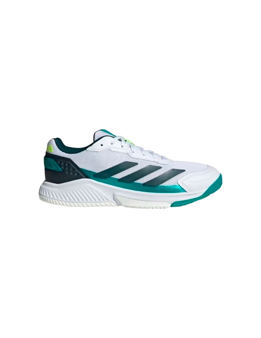 Les Adidas Courtquick Padel Blanc Vert sont conçues pour les joueurs de padel intensifs qui recherchent vitesse, confort et stabilité. Leur tige légère en textile et synthétique favorise la respirabilité et un mouvement naturel, tandis que la structure Slingframe assure la stabilité lors des virages et des changements de direction rapides.