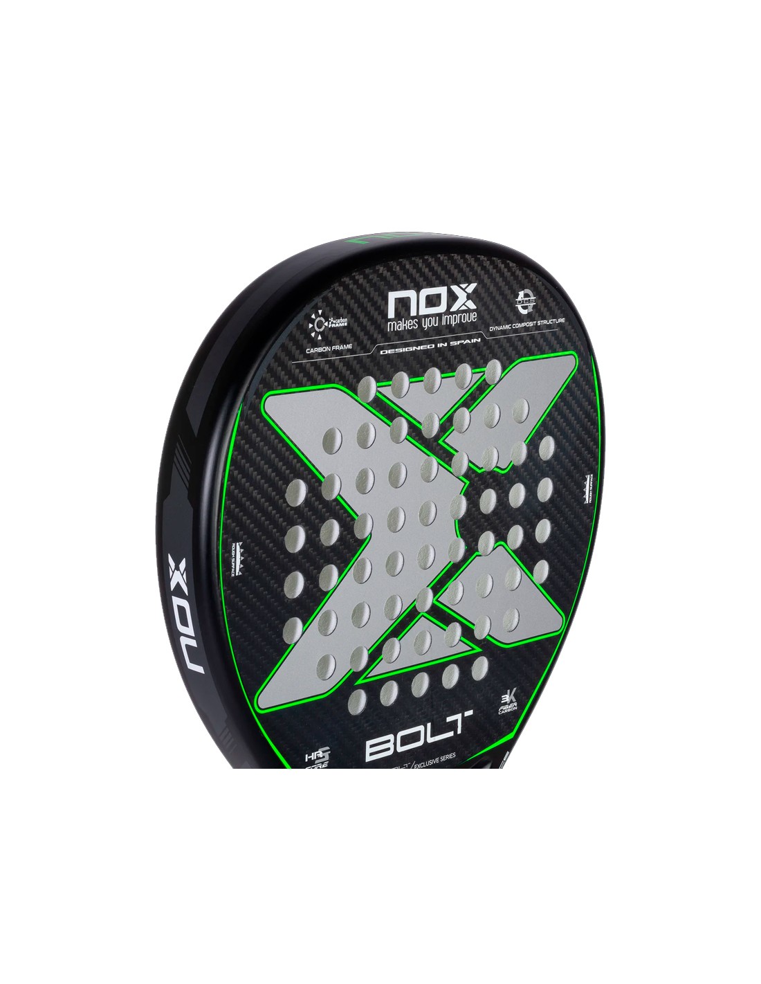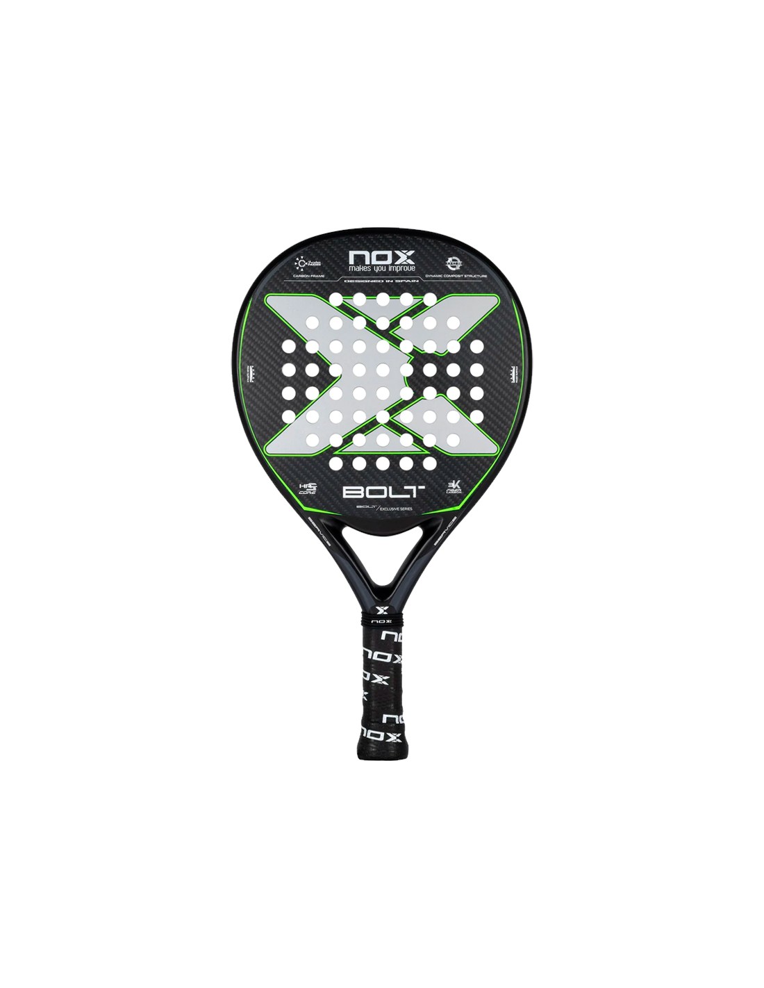 La raquette Nox Bolt est une raquette de padel au format larme , conçue pour les joueurs avancés recherchant un équilibre parfait entre puissance et contrôle dans leur jeu.