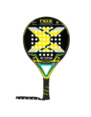 En termes de design, cette raquette Nox a un style moderne et élégant, avec des détails noirs, jaunes et bleus qui lui donnent un look saisissant et très frais. À