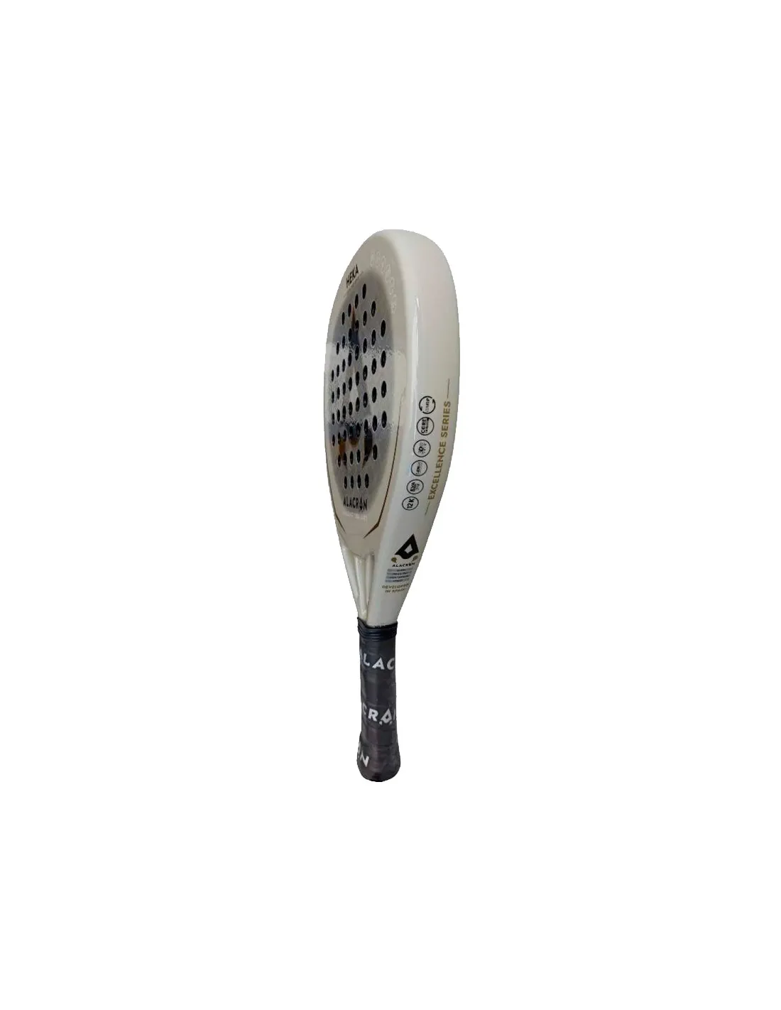 Sa face est en carbone aluminisé 12K , un matériau haute performance qui offre une excellente stabilité et un toucher net et précis à l'impact. Cette finition sublime non seulement son esthétique, mais garantit également des sensations exceptionnelles, idéales pour les joueurs recherchant une sensibilité maximale sans compromettre la solidité à l'impact.