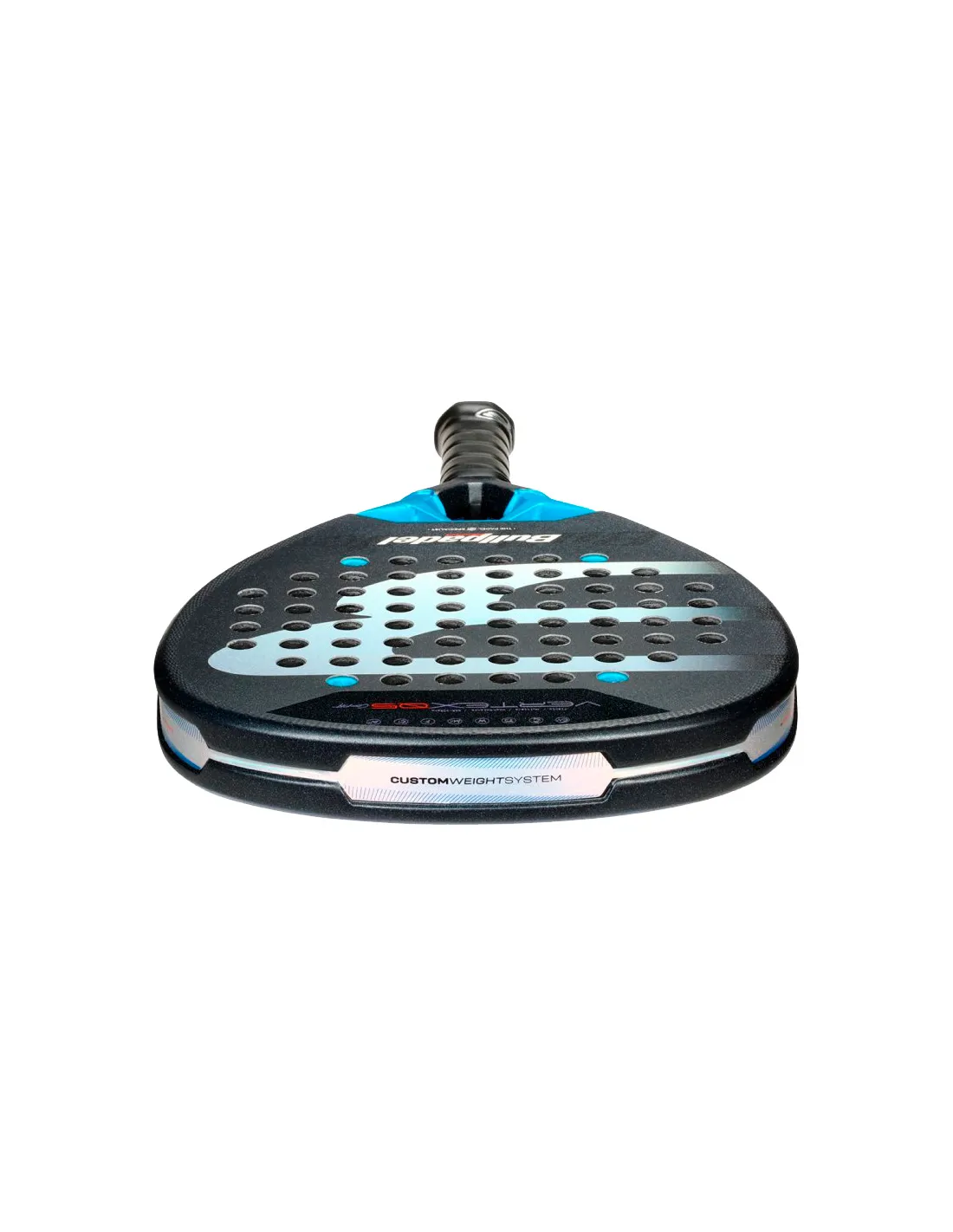 Its Fibrix (fiberglass + carbon) composition provides an accessible and versatile feel, while the three-layer Multieva core combines power and control: rigid outer layers for explosive hits and a soft inner layer to absorb impacts and protect your arm.