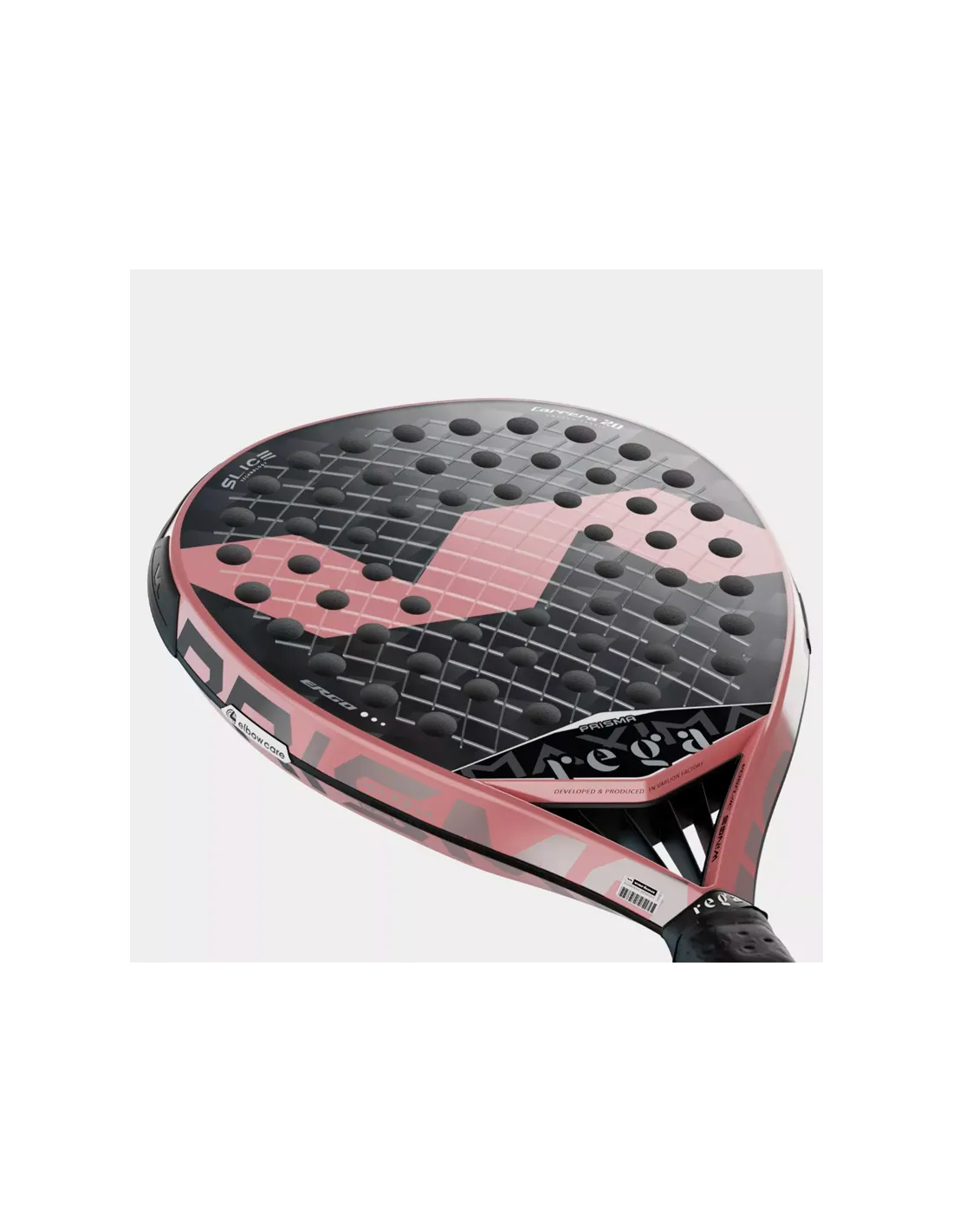 The hitting surface is made of Carrera 20 (18K) carbon and features SLICE technology, a textured surface optimized for precise and aggressive spin. The Ergoholes pattern, with progressively sized holes across the paddle, allows for cleaner and more consistent shots. It also incorporates the 14.5 cm Summum grip , ideal for two-handed shots, the HandleSafety system for a secure hold, and the AD System , an injected and adhesive protector that safeguards the frame without compromising aerodynamics.