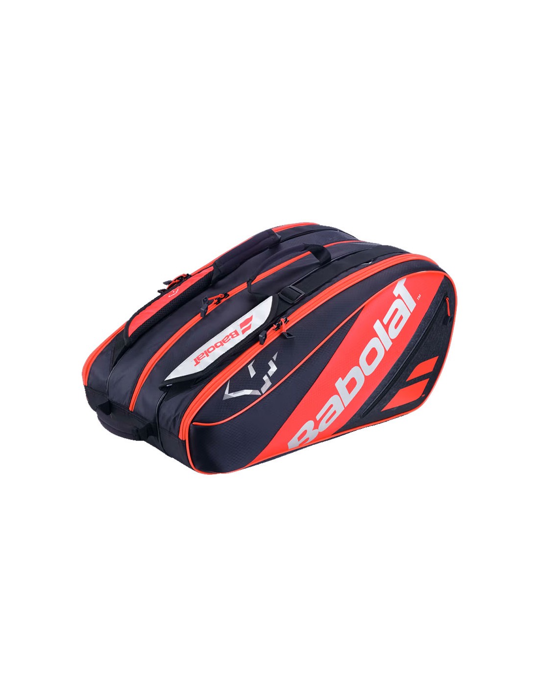 The Babolat RH Padel Juan Lebrón padel bag is a padel bag designed for demanding players, inspired by the competitive spirit of Juan Lebrón. It combines an elegant and functional design with separate compartments and smart pockets to organize all your equipment. Made with robust materials and an eco-friendly interior lining, this bag guarantees durability and respect for the environment. It is the perfect option to transport your rackets and accessories safely and stylishly, on and off the court.