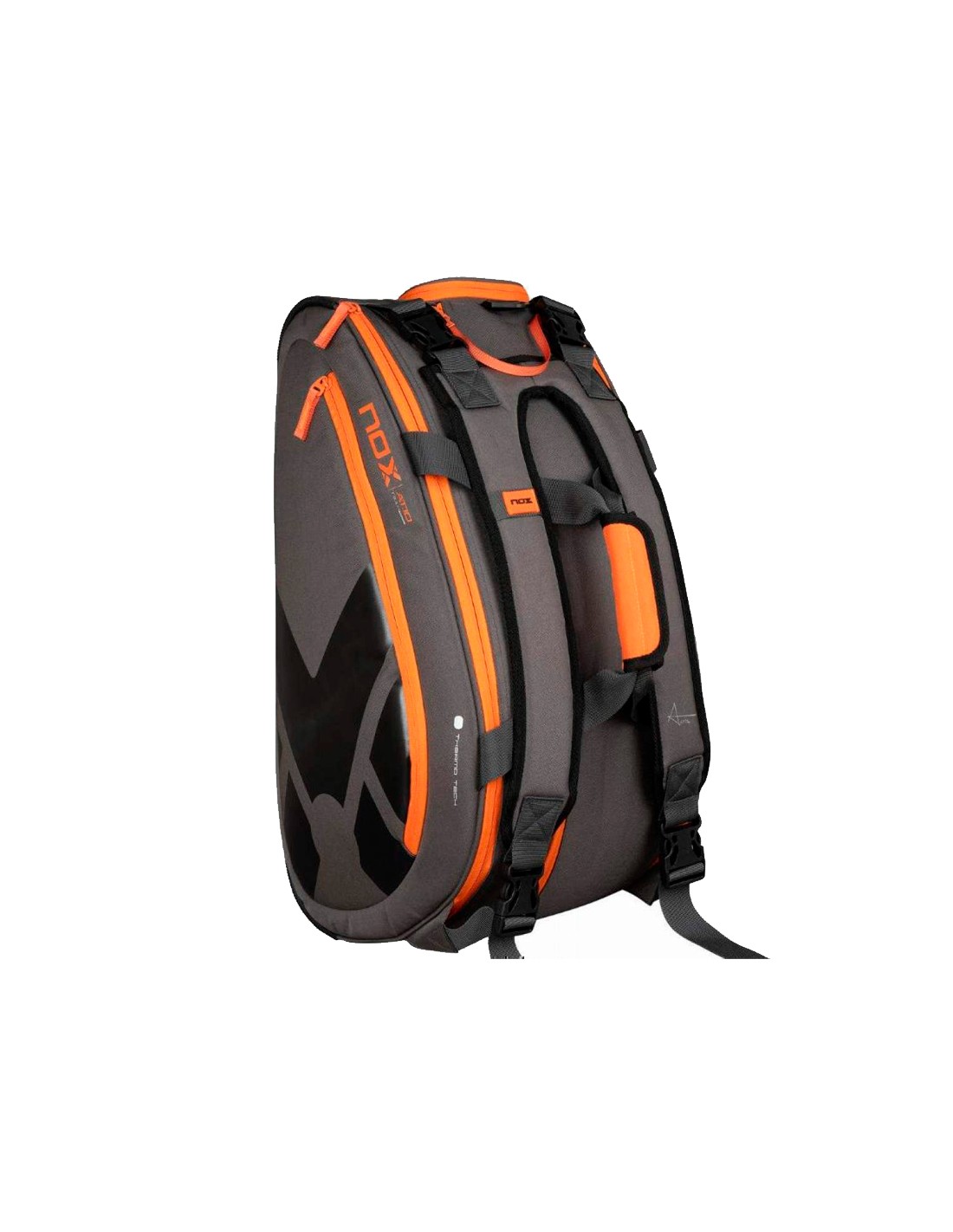 The Nox Agustín Tapia Team Paletero in its black and orange version is the ideal choice for padel players who demand the best in design, capacity, and functionality. Inspired by the charismatic Agustín Tapia, this model fuses a powerful aesthetic with exclusive details, such as his signature and the Nox logo, which reinforce its professional and competitive character.