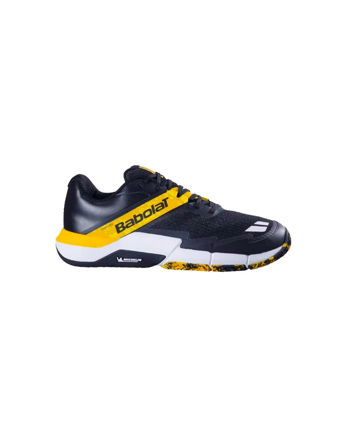 Durability and grip are guaranteed thanks to the Michelin sole , made with a high-resistance rubber developed in collaboration with Michelin. This sole offers excellent wear resistance and superior grip on padel surfaces, providing security and confidence with every movement.