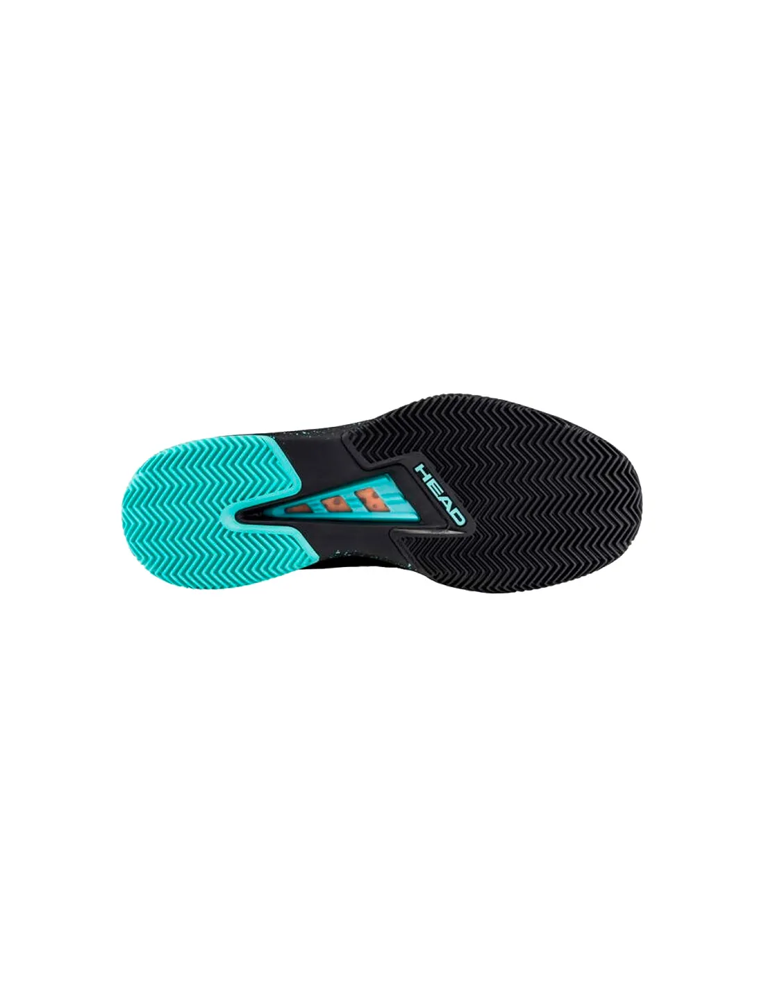 The clay-court pattern on the sole provides excellent grip on padel courts , enhancing both traction and controlled slides. Furthermore, its structure improves lateral stability, crucial in padel for quick responses to short shots, volleys, and changes of pace.
