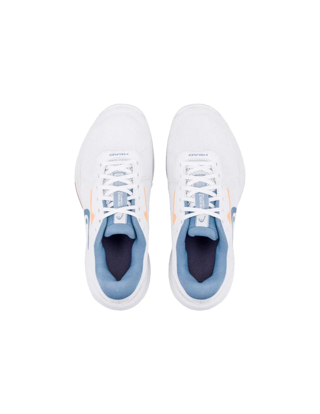 The Head Revolt Court 5.0 White/Blue Women's shoes combine advanced technology and ergonomic design to fit the female anatomy, providing a secure and comfortable fit throughout the match. Their lightweight construction allows for quick movements and agile changes of direction, essential for dynamic and precise play.