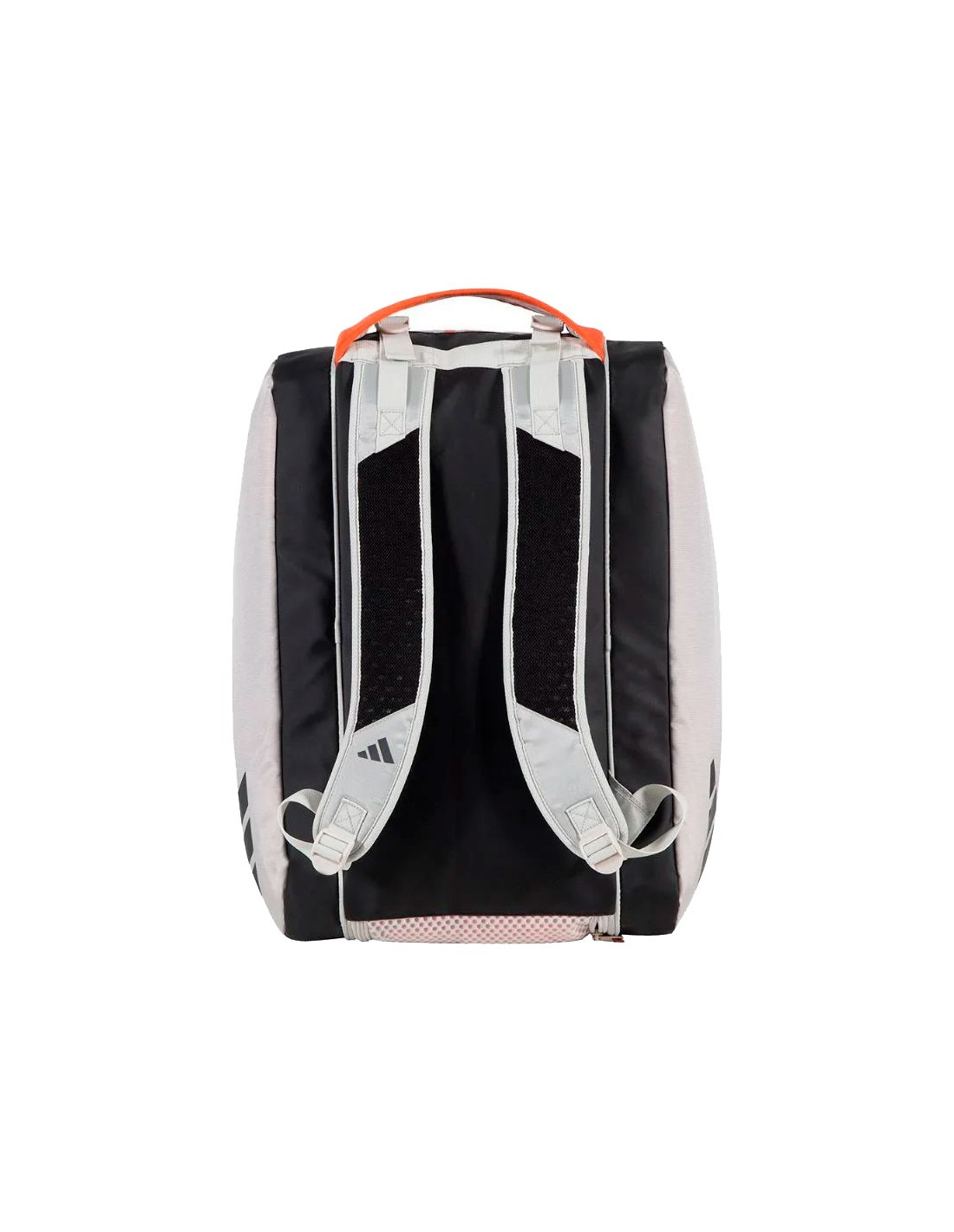 I due scomparti laterali sono pensati per trasportare le tue racchette da padel, ricoperti da un isolamento termico che garantisce che le tue racchette rimangano in perfette condizioni, proteggendole dagli sbalzi di temperatura. Sotto lo scomparto centrale, troverai uno spazio in rete pensato appositamente per le scarpe, che facilita la ventilazione e mantiene pulito il resto del contenuto della borsa per la racchetta.