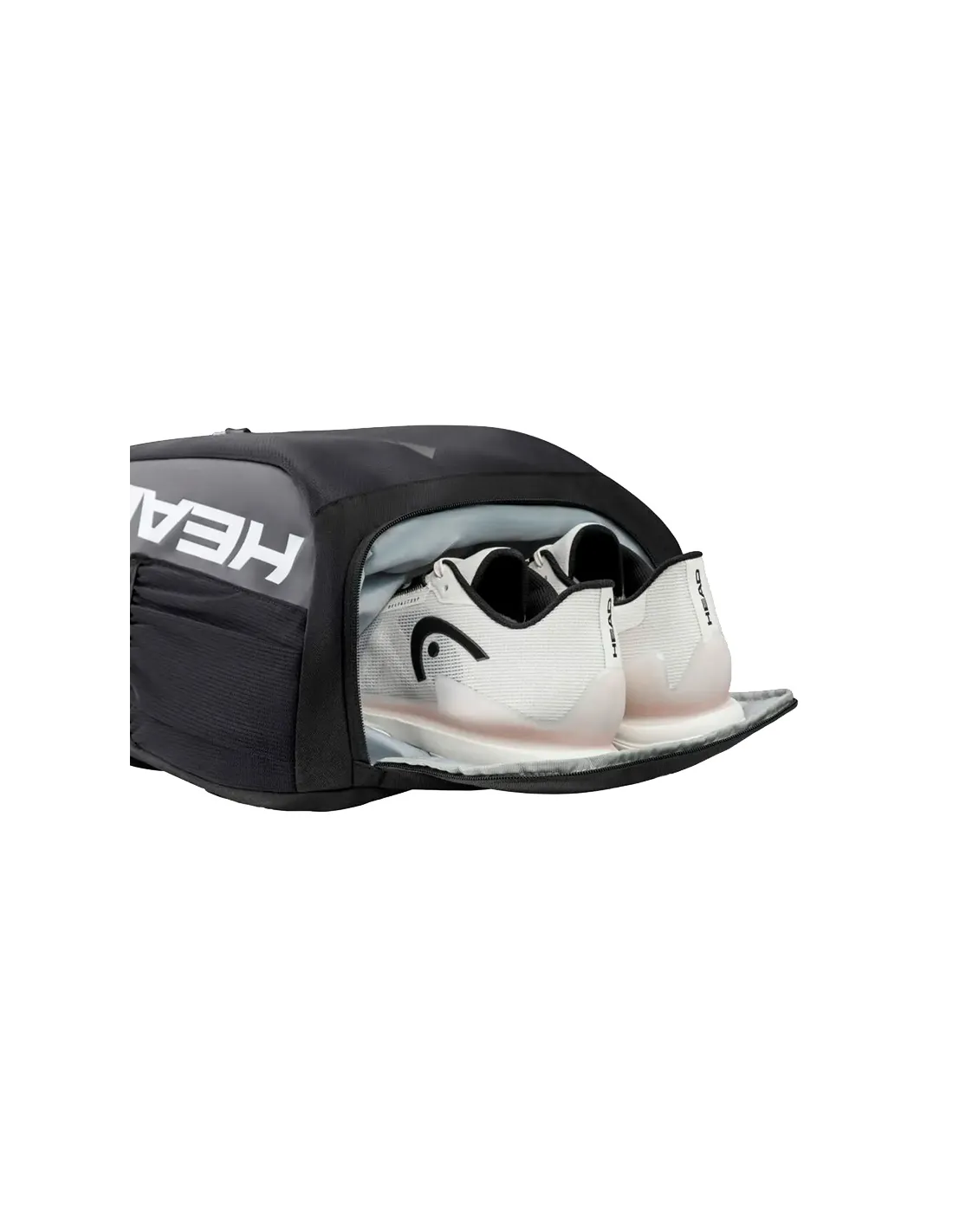 Progettato per la massima funzionalità, è dotato di uno scomparto principale spazioso e versatile con spazio per una o due racchette e di uno scomparto ventilato per le scarpe per mantenere tutto in ordine. Dispone inoltre di una tasca esterna con cerniera per oggetti di valore e di due tasche laterali in rete di facile accesso. Con una capacità di 25 litri e dimensioni di 33,5 x 51 x 25 cm , è realizzato con materiali di alta qualità: 45% poliestere e 55% PU all'esterno e 100% poliestere all'interno.