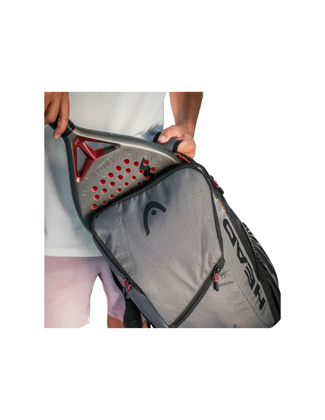 Lo zaino Head Arturo Coello Tour Black and Gray è una soluzione pratica e versatile per i giocatori di padel che cercano comfort e stile anche in movimento. Ispirato al gioco del campione Arturo Coello , presenta un design moderno nei toni del nero e del grigio, perfetto sia per il campo da gioco che per l'uso quotidiano.