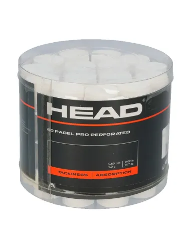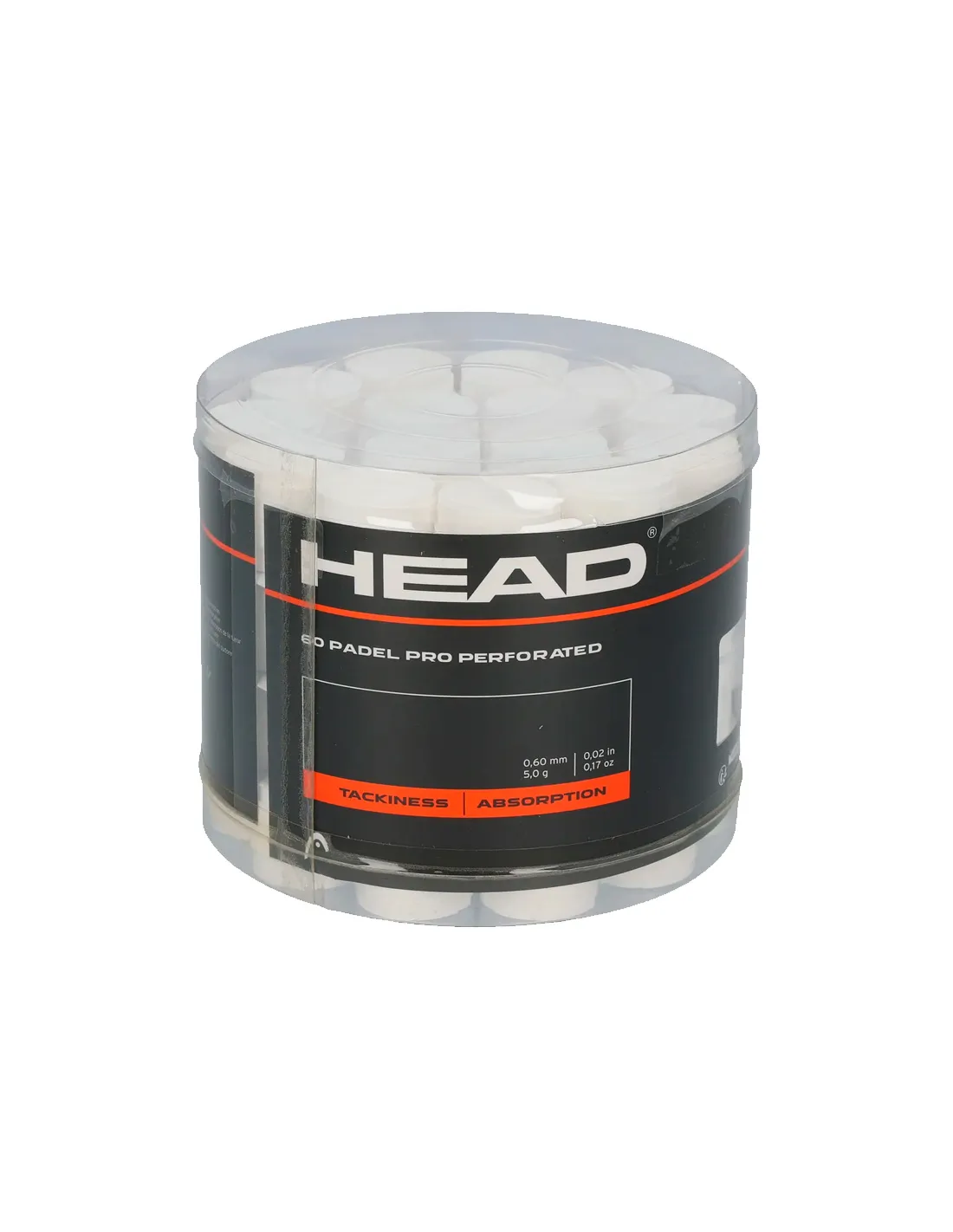 Il Head Padel Pro Perforated White Drum contiene 60 overgrip ad alte prestazioni progettati per offrire una presa superiore in qualsiasi condizione di gioco. Grazie alla loro consistenza morbida e al design perforato, questi overgrip sono progettati per migliorare la ventilazione e ridurre l'umidità sull'impugnatura, offrendo una sensazione più asciutta e stabile durante le partite più intense.