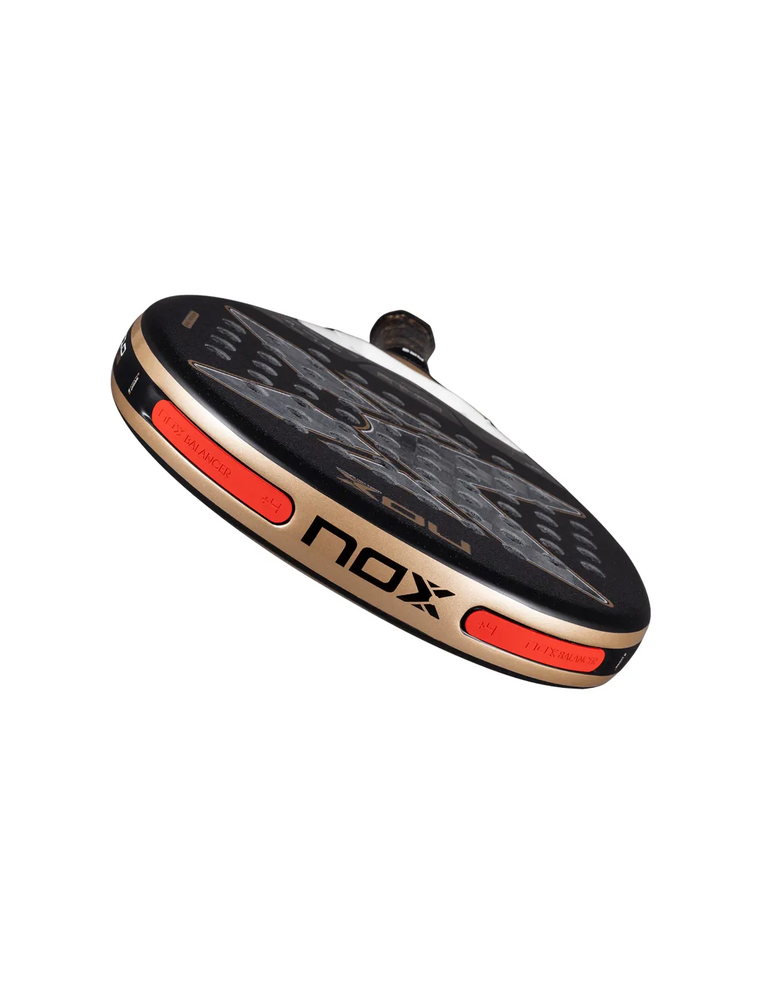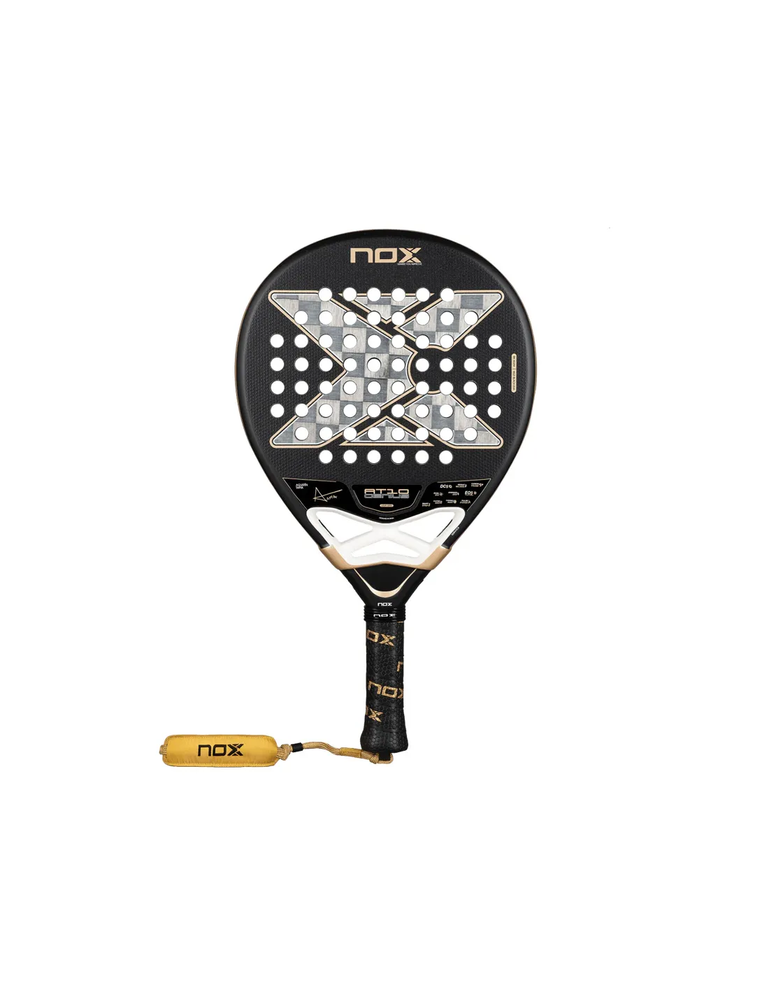 Esteticamente, la Nox AT10 Genius 18K Alum 2026 presenta la vernice Chromic Paint, una vernice fotocromatica che si sincronizza con il colore della gomma, garantendo un aspetto armonioso e sorprendente in campo. La sua superficie Dual Spin , che combina una texture 3D e una finitura in silice sabbiata, amplia la gamma di colpi, consentendo ogni tipo di effetto senza compromettere la durata dei materiali.