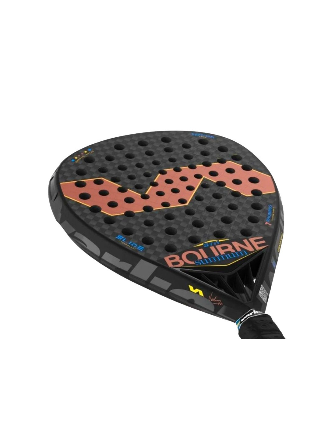 Ispirata a due modelli iconici del marchio, la Bourne combina la potenza della leggendaria Cañon con la versatilità della Avant. La sua forma a goccia ottimizzata è pensata per i giocatori che richiedono la massima potenza senza rinunciare a sensibilità e precisione nei colpi. È la racchetta perfetta per alternare attacchi aggressivi e controllo del ritmo della partita.