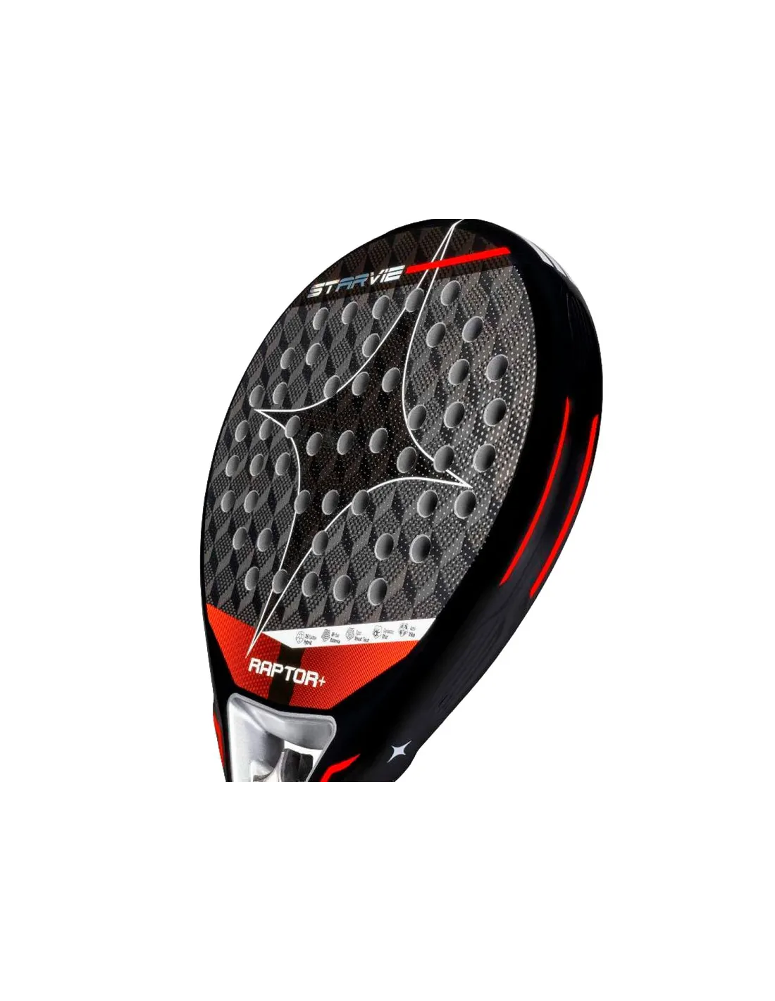 La racchetta da padel StarVie Raptor+ 2026 incorpora anche due delle grandi innovazioni della collezione 2026: il sistema Anti-Vibe, che assorbe le vibrazioni per proteggere le articolazioni e migliorare la sensazione del colpo, e la Dynamic Star, una stella con peso regolabile che consente di modificare l'equilibrio della racchetta fino a 0,3 cm, adattandolo con precisione allo stile di ogni giocatore.