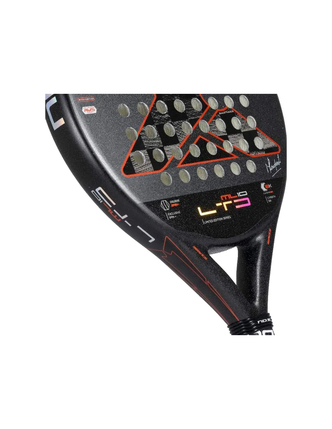 Il cuore del pacchetto è la ML10 Pro Cup LTD Edition 2023 , una racchetta che combina carbonio 18K sulle facce con gomma HR3, offrendo una sensazione di solidità, comfort ed estremamente affidabile. Questa edizione incorpora l'esclusiva tecnologia SPIN+, una finitura resistente a doppia ruvidità che migliora la presa sulla palla e potenzia i colpi con effetto. Include anche l'innovativo sistema Smartstrap® , il primo cordino di sicurezza sostituibile, ora evoluto per offrire maggiore resistenza, sicurezza e igiene.