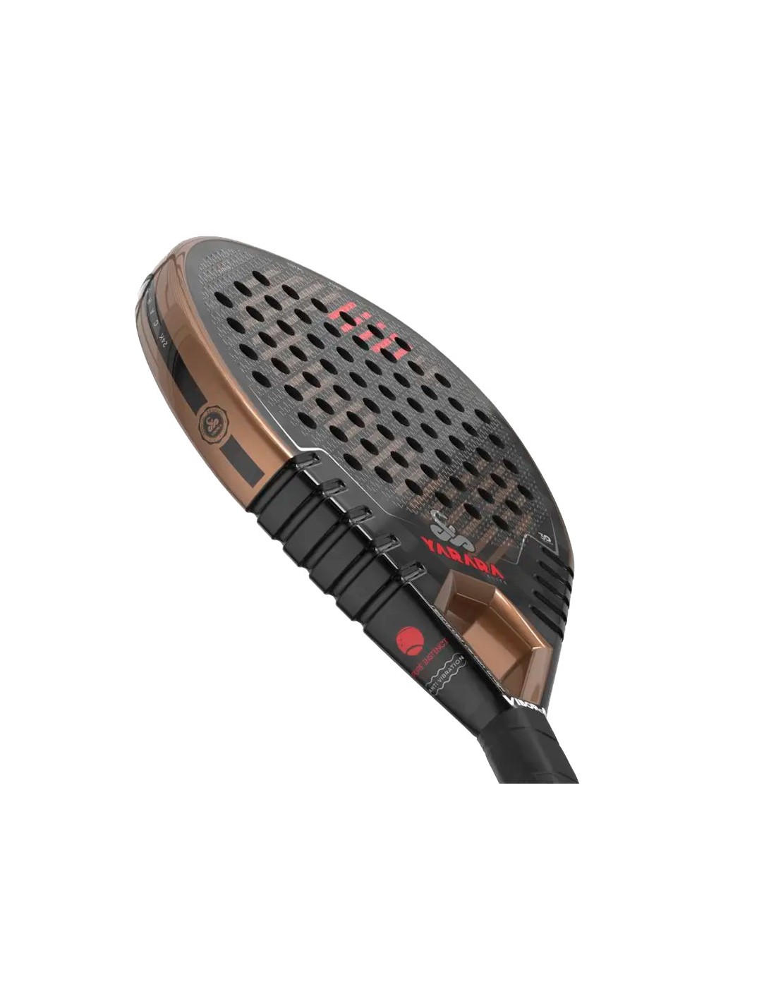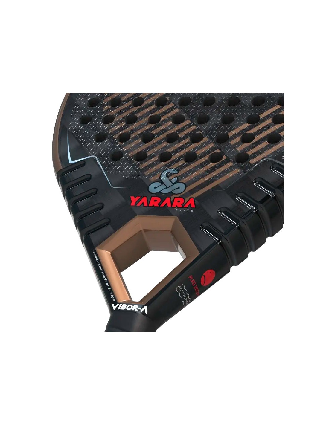 Il design dello Yarara Elite 24K presenta dettagli strappati sui lati del ponte, aggiungendo una dimensione visiva unica. Ispirata all'eleganza della Racchetta da padel Vibora Yarara Xtreme 3K, questa racchetta presenta finiture dorate che non solo sono esteticamente impressionanti, ma rafforzano anche la sua identità d'élite. Questi dettagli non sono solo un tocco di stile, ma anche un simbolo dell'eccezionale qualità di Yarara Elite 24K.