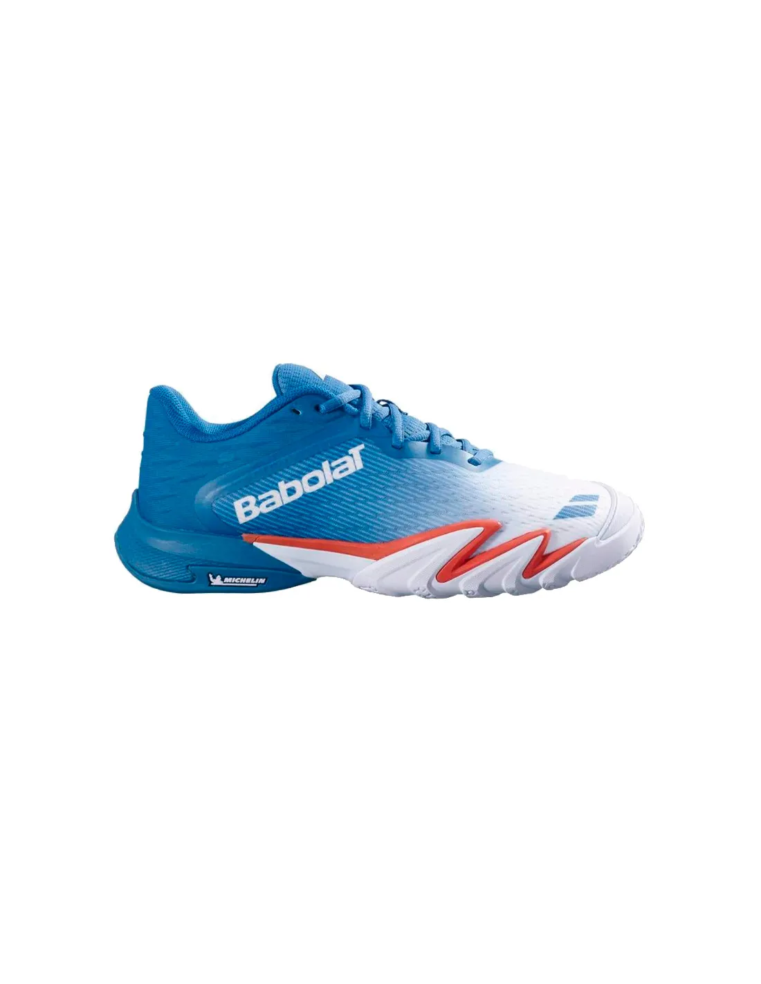 La suola 100% Padel Michelin , sviluppata in collaborazione con Michelin e ottimizzata per i campi Mondo Padel, garantisce un grip professionale, un'eccellente durata e una riduzione dell'affaticamento. Inoltre, la tecnologia 360° Flex incorpora scanalature specifiche che favoriscono la flessione naturale del piede durante curve, accelerazioni e cambi di direzione.