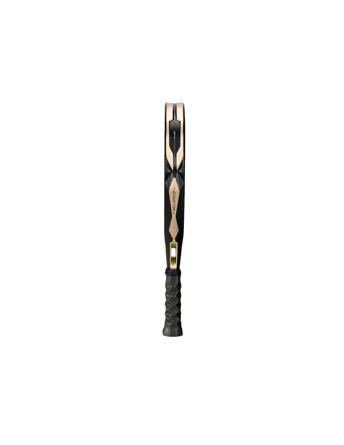 Sua estrutura em X-Tend Carbon 3K proporciona rigidez e precisão absoluta, enquanto a rugosidade 3D Grain e o padrão Smart Holes otimizam a sensação de contato e melhoram o controle do spin. O núcleo MultiEVA, com três camadas de EVA de densidades variadas, combina uma resposta sólida em tacadas potentes com um toque suave em tacadas lentas ou posicionadas.