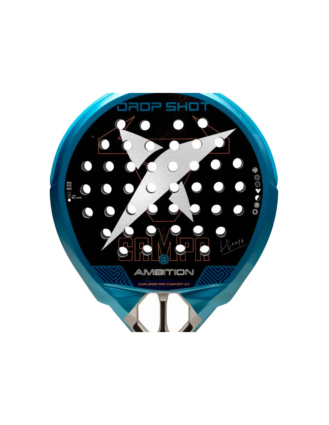 A raquete Drop Shot Explorer Pro Comfort 2.0 faz parte da linha Ambition da Drop Shot , oferecendo a expertise profissional de Lucas Campagnolo em um modelo mais acessível. Ela foi projetada para jogadores de nível intermediário e avançado que apreciam o padel como esporte e estilo de vida, combinando conforto, desempenho e durabilidade.