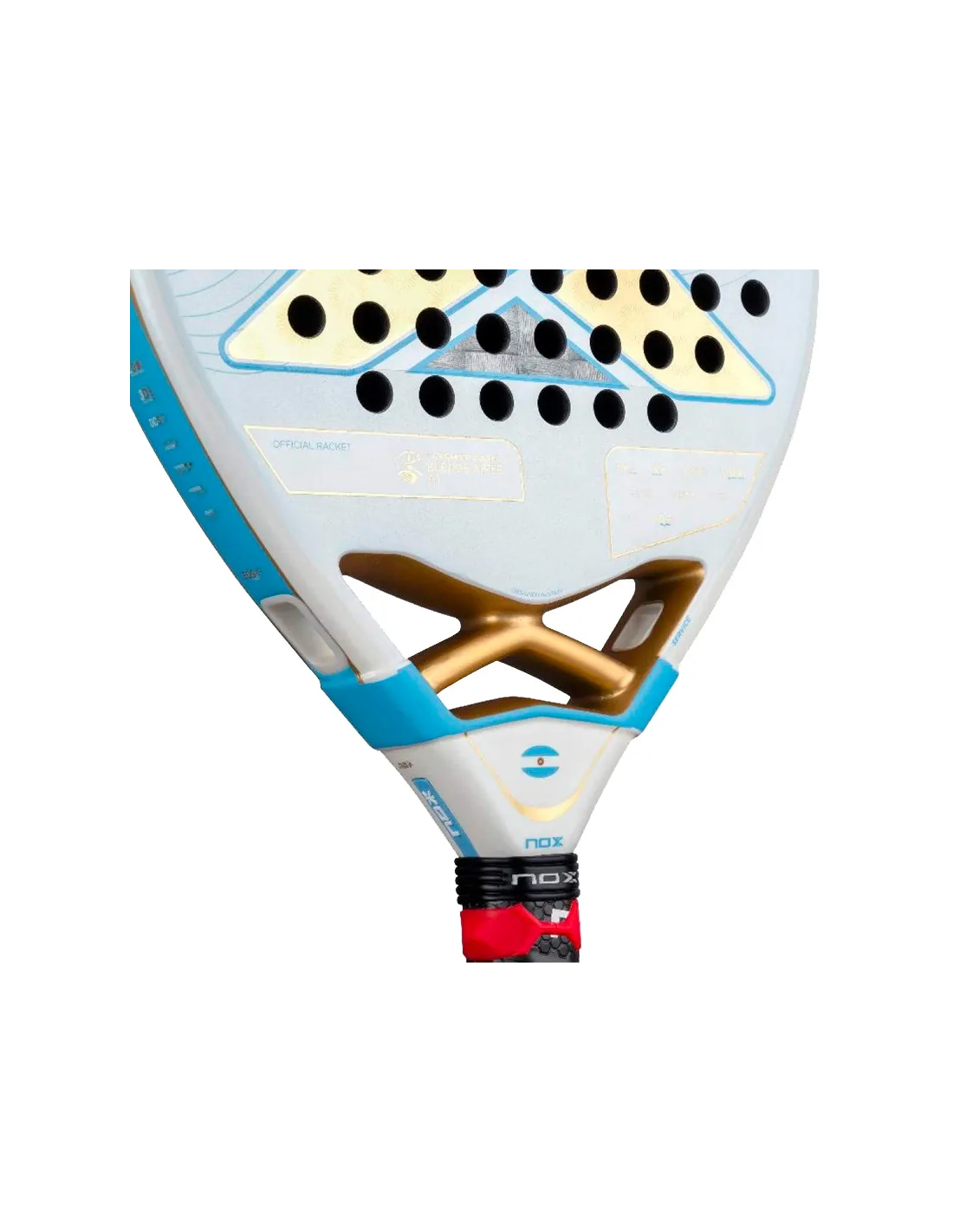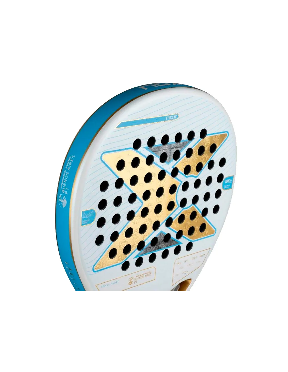 A raquete Nox AT10 Luxury Genius 18K Alum Buenos Aires P1 2025 é uma edição limitada que combina desempenho profissional com o estilo argentino. Precisão, potência e tecnologia de ponta se unem em uma raquete projetada em colaboração com Agustín Tapia para jogadores que querem fazer a diferença em cada ponto.