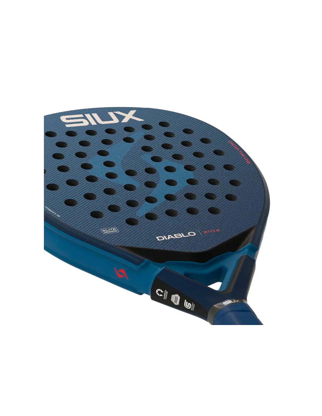 A raquete de padel Siux Diablo Elite 6 também possui um sistema de alças substituíveis que aumenta a segurança e permite uma empunhadura personalizada, garantindo que a raquete esteja sempre em ótimas condições. Combinado com um ponto ideal otimizado, isso proporciona maior eficiência em golpes fora do centro e desempenho consistente, mesmo durante os ralis mais exigentes.