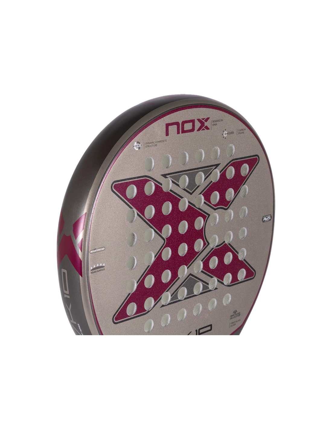 A raquete de controle Nox Vk10 By Aranzazu Osoro é uma raquete de padel de última geração projetada para jogadores de nível avançado que buscam maior controle em seus golpes. Esta raquete foi desenhada em colaboração com a jogadora argentina Aranzazu Osoro para atender às suas necessidades específicas na quadra de padel.