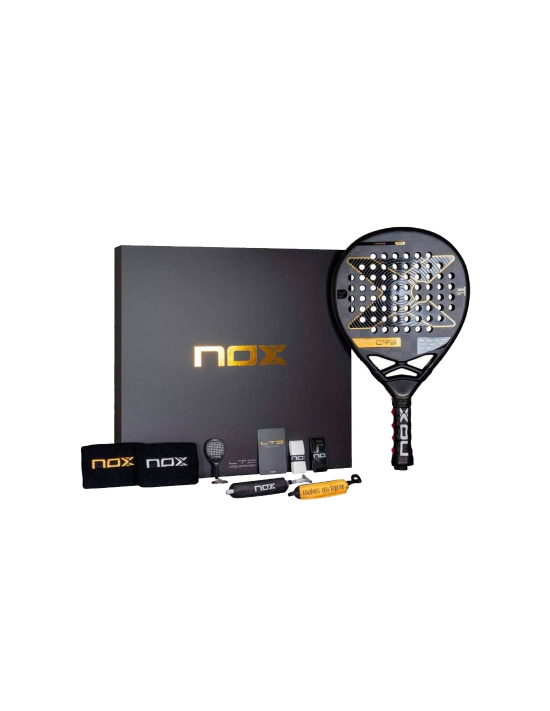 Este pacote exclusivo também inclui duas pulseiras Nox , dois overgrips , duas SmartStraps intercambiáveis e uma réplica do chaveiro da raquete. Tudo o que você precisa para oferecer uma experiência premium no padel.
