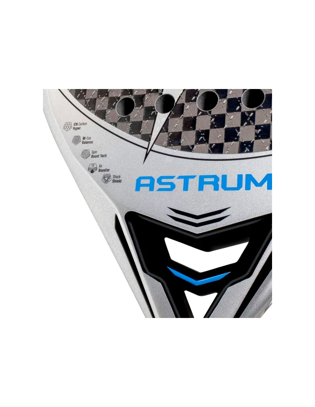 A Astrum+ 2026 é complementada pela Spin Boost Tech, que aprimora o spin e a precisão, pela Five Sides Tech, que reforça a rigidez estrutural, e por uma construção meticulosa em carbono que garante durabilidade e desempenho. Em suma, uma raquete projetada para quem busca dominar cada ponto com potência, controle e elegância.