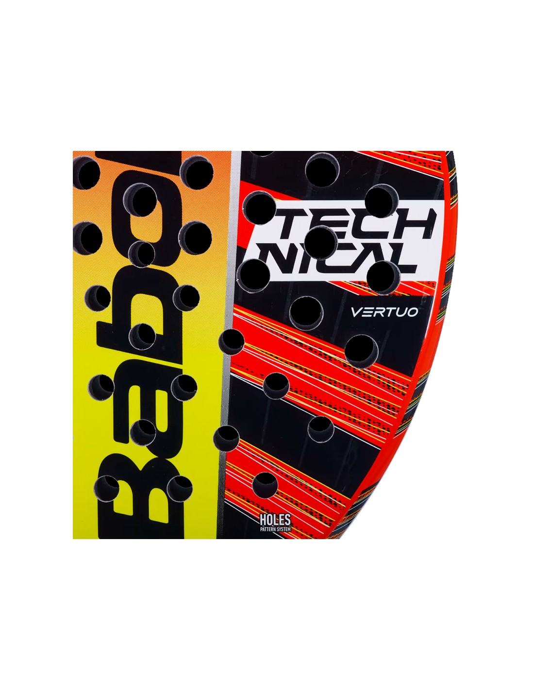 Aumentando a potência e a precisão em cada golpe ofensivo, as faces do Babolat Technical Vertuo 2023 abrigam o inovador Soft Fiber, um amálgama de fibras flexíveis que, com o mínimo de esforço, geram máxima potência e energia, ao mesmo tempo que proporcionam perdão e conforto excepcionais na pista. A superfície também abriga a tecnologia 3D Spin , uma interação de relevos que ampliam o repertório de efeitos que a bola pode assumir.