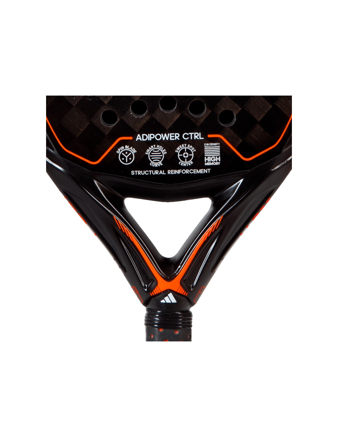 O ADIPOWER CTRL 3.2 também incorpora a tecnologia Spin Blade , que é um design especial na borda da lâmina que permite gerar mais giro em seus golpes. Além disso, possui a tecnologia Smart Holes Curve, que é um padrão de furos que maximiza o ponto ideal da raquete e reduz as vibrações em golpes descentralizados.